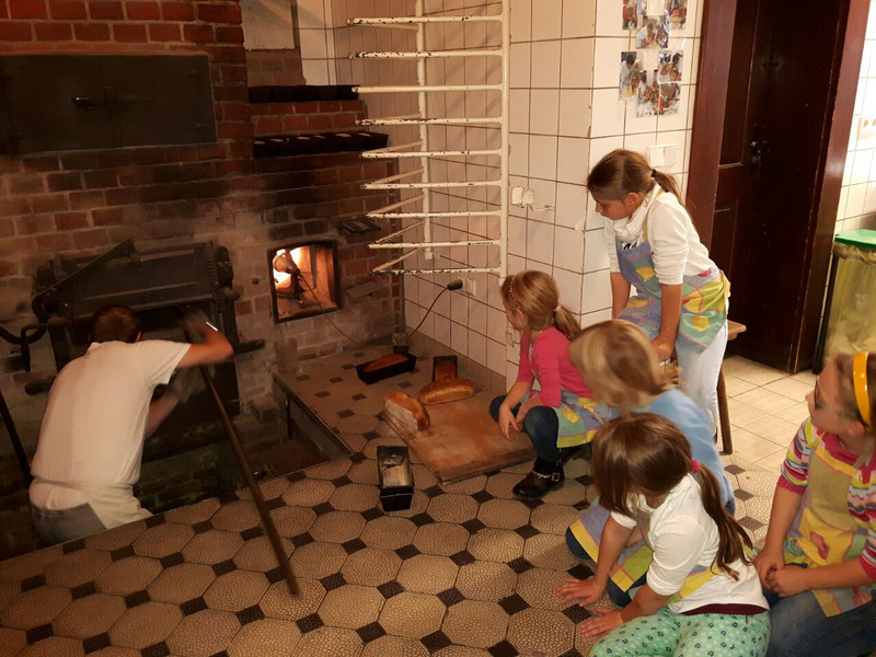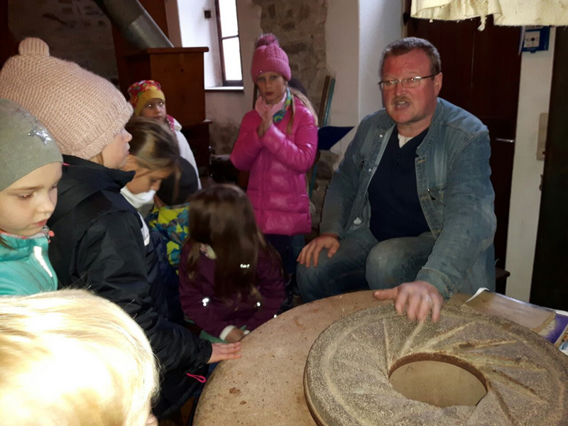 Klassen 3a/b zu Besuch in der Wetzelmühle mit Mühlenführung und Brot backen