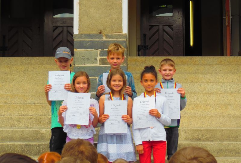 Im Anschluss wurden in jeder Klasse die 3 besten Mädchen und Jungen ermittelt und mit einer Medaille ausgezeichnet.