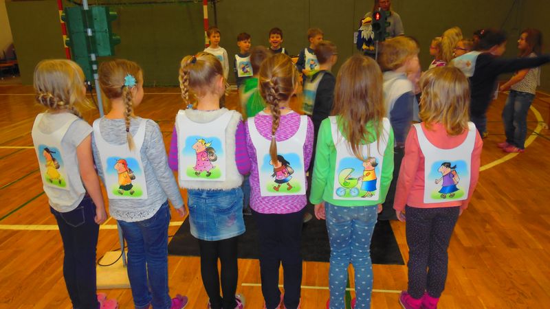 Er zeigte uns, wie man sich zu Fuß und auf dem Fahrrad richtig verhält, wie man an einer Ampel und am Zebrastreifen richtig die Straße überquert und wir lernten sogar ein gemeinsames Lied.