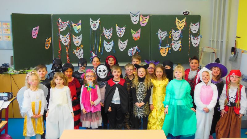 Alle Kinder und auch Lehrer kamen verkleidet in die Schule und es gab viele kreative Kostüme zu bestaunen. In der Turnhalle kam es dann zum Wettbewerb in kleinen Staffelspielen. Die Sieger konnten sich Münzen verdienen. Alle Schüler hatten eine Menge Spaß und es wurde zur Faschingsmusik ausgelassen gefeiert.