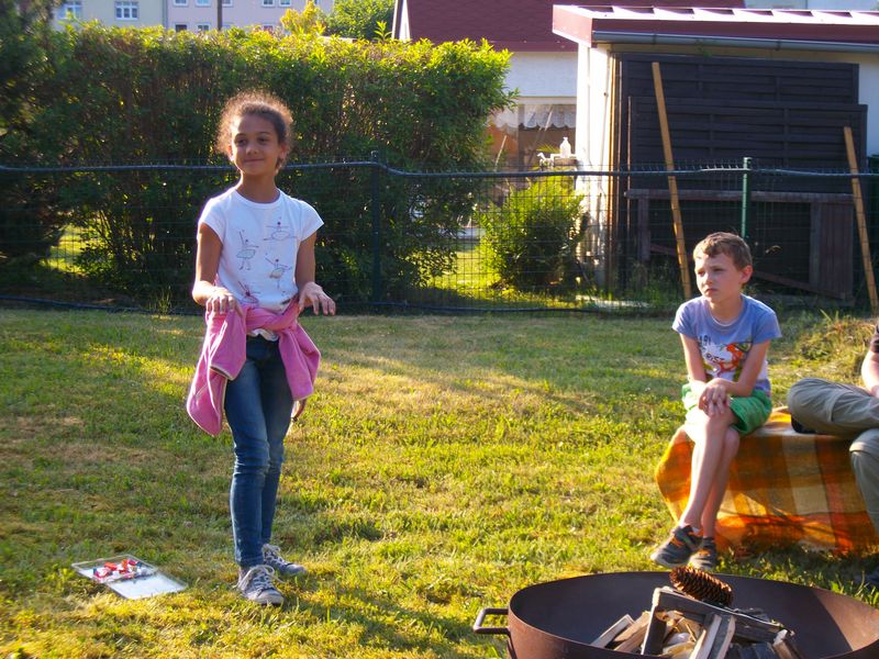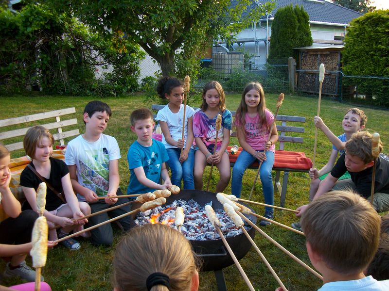 Vom 2.06. zum 3.06.2017 führte die 3. Klasse ihre Lesenacht durch. Wir trafen uns um 17:00 Uhr in der Schule. Dort spielten wir 3 Kapitel aus unserem erst kürzlich gelesenen Kinderbuch "Eine Woche voller Samstage" nach. Abendbrot gab es im Schulgarten und nach einer kleinen Wanderung noch ein Stockbrot, welches wir über der Feuerschale im Schulgarten backten.