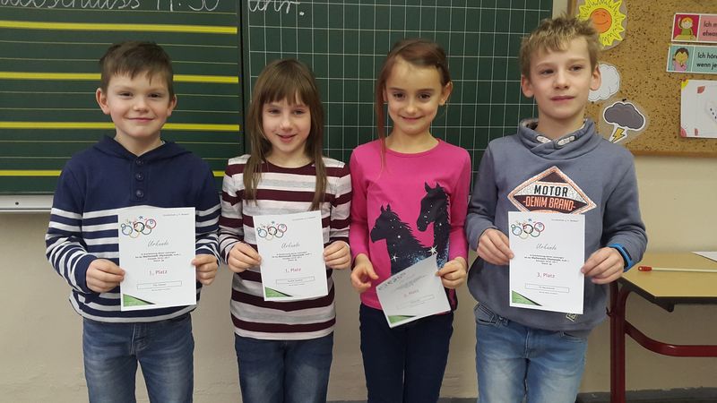 Hier muss nicht nur gerechnet, sondern Regeln, Muster und Kombinationen erkannt und angewendet werden. Alle Schüler waren sehr motiviert und strengten sich an, um ein gutes Ergebnis zu erzielen. Die besten 3 Kinder jeder Klasse wurden schließlich ausgezeichnet.