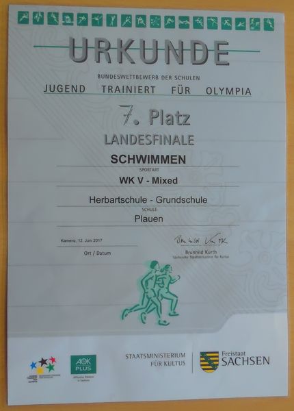 Eine kleine Gruppe der Schwimmauswahl der Klasse 2 vertrat die Herbart Grundschule beim regionalen Schwimmwettkampf. Dabei erreichten sie den ersten Platz und qualifizierten sich für das Landesfinale in Kamenz.