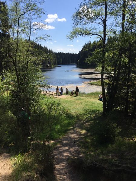 Wir haben uns viel bewegt, nutzten das Volleyballfeld, machten ein Bowlingturnier und unternahmen eine Wanderung zum Vogtlandsee, wo wir den Zwerghaubentaucher beobachten konnten.