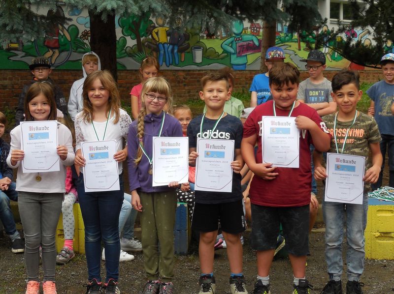 Im Anschluss wurden in jeder Klasse die 3 besten Mädchen und Jungen ermittelt und mit einer Medaille ausgezeichnet.