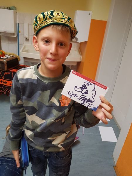 Da die Kinder bei der Lesung mitmachen konnten, waren sie begeistert bei der Sache. Sie lauschten den Geschichten, probierten verschiedene Kleidungsstücke an, betrachteten die Fotos, malten und konnten sich bei TINO selbst eine kleine Wunschzeichnung abholen.