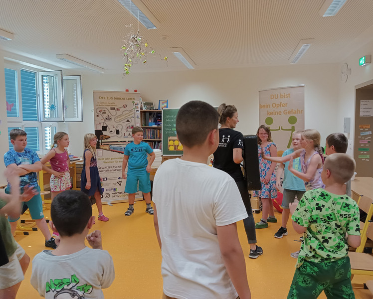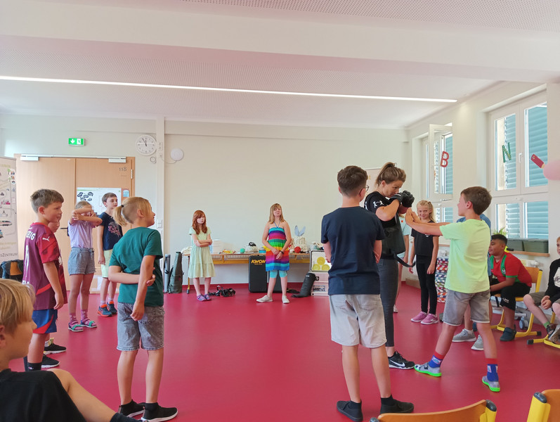 Auch in diesem Schuljahr erhielten die Kinder der 4. Klassen die Möglichkeit, an einem umfangreichen Gruppenklima-Sozialkompetenztraining teilzunehmen, welches vom Verein für Aktivität und Prävention (VAP) e.V. durchgeführt wurde. Sie lernten, dass ihr Verhalten ebenso erlernt ist, wie das Einmaleins im Matheunterricht und einmal verinnerlichte positive Verhaltensweisen nicht wieder vergessen werden. Mit theoretischen und praktischen Anteilen setzten sie sich mit unterschiedlichen Formen von Gewalt auseinander und vertieften dabei, dass schon Beschimpfungen und Beleidigungen eine Art von Gewalt sind. In einem freundlichen und achtsamen Miteinander sind diese ebenso fehl am Platz, wie körperliche Verletzungen. Die Kinder trainierten darüber hinaus immer wieder das klare und selbstbewusste Grenzen setzen in Form von einem energischen „STOPP“-Sagen, ohne das Gegenüber gleichzeitig zu provozieren. Mit kurzen Entspannungseinheiten sowie einem Flaschendrehen der besonderen Art „Ich [Name] bin ein wertvoller Mensch, weil …“ wurden nach intensiven Einheiten immer wieder positive Verstärker ins Klassenzimmer geholt.