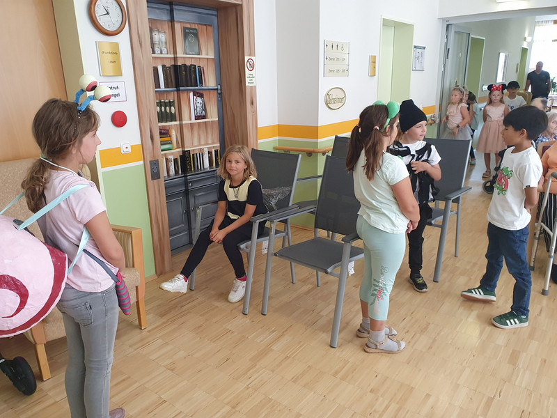 Hier wollen wir uns im Doppelpack bedanken, denn auch schon eine Woche vorher erhielten die Drittklässler unserer Grundschule leckeres Eis, als Dankeschön für die zwei Aufführungen, die sie im Altersheim zum Besten gegeben haben. Diese präsentierten die Kinder am 23.8.2024 zweimal vor den Senioren. Obwohl vorher eine große Aufregung herrschte, wurde dies mir Bravour gemeistert. Die Schülerinnen als auch Schüler führten ihr einstudiertes Schulanfangsprogramm auf, welches aus einem Theaterstück sowie verschiedenen Liedern bestand. Die Kernaussage des Stücks bezog sich auf die individuellen Stärken jedes Einzelnen. Im Bärenwald hat man nämlich viele verschiedene Tiere angetroffen, von denen jedes etwas anderes besonders gut konnte – ganz gleich ob jung oder alt. So wie es nun mal im Leben glücklicherweise auch wirklich ist und geschätzt werden sollte. Der Auftritt der Kleinen hat dem Publikum strahlende Augen beschert... und uns auch! Wir freuen uns bereits jetzt schon sehr auf die nächsten Zusammentreffen.