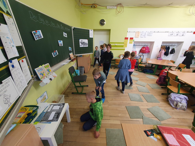 Am 18. September fand für die Klassen 3a, 3b und 4a der Unterricht im Stadtpark Kitzscher statt. Gemeinsam mit den Veranstaltern vom Ministerium für Abenteuer erkundeten die Grundschüler ihre Umgebung mit Hilfe von Tablets. In Kleingruppen mussten sie verschiedene Punkte anlaufen, die durch GPS-Koordinaten gekennzeichnet wurden. An den unterschiedlichen Standorten konnten die Kinder dann zahlreiche Rätsel rund um das Thema Natur und Umweltschutz lösen. Die größte Herausforderung war dabei, sich auf der Karte zu orientieren.