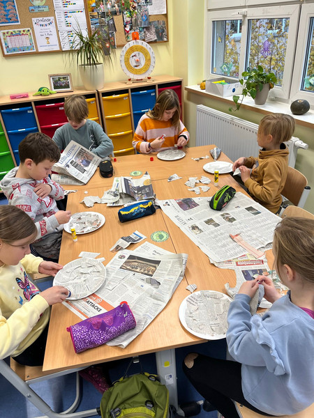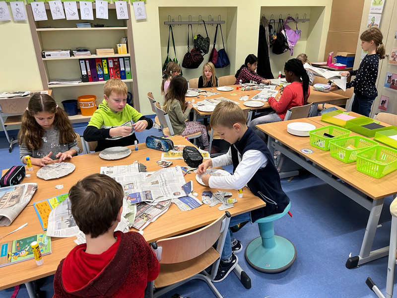 Einige Kinder lauschten Geschichten über Koalas, die mehr Selbstvertrauen haben sollten. Andere sprachen über den Sinn von Mutproben oder versuchten die innere Stärke eines Löwen zu finden. Gemeinsam mit Fin Vogelschreck erfuhren die Schülerinnen und Schüler mehr über Toleranz und Weltoffenheit. In zwei Büchern drehte sich alles um das Thema Umwelt bzw. Umweltschutz. Die Kinder sprachen über den Wert der Natur und was sie tun können, um sie zu schützen. Zwei andere Vorleseaktionen beschäftigten sich mit Freundschaft. Gemeinsam mit der „Ritter Eule“ verwandelten sich einige unserer Schülerinnen und Schüler in Ritter. Sie gestalteten ihre eigenen Schwerter und Schilde. Andere angehende Ritter hörten jedoch lieber der Geschichte vom „Ritter, der nicht kämpfen wollte“.
