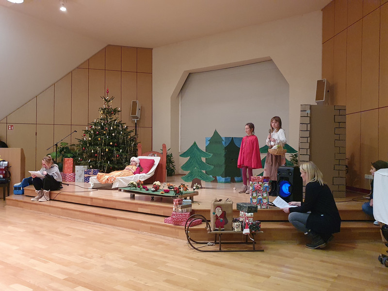 Besonders beeindruckend zeigten sich auch die ukrainischen Kinder der DaZ-Klasse, welche ein wundervolles Gedicht in deutscher Sprache aufsagten – bei so viel Fleiß, kann der Sack des mittlerweile durchtrainierten Weihnachtsmannes für diese Kinder ja nur riesig ausgefallen sein. Doch scheinbar musste der bärtige Mann danach vor Erschöpfung eingeschlafen sein, so dass die dritten Klassen ihn erst einmal wieder mit einem Tanz und passender Gesangseinlage wecken mussten – erfolgreich!