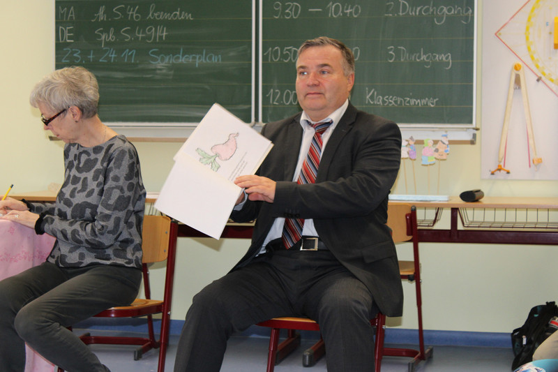 Auch Kitzschers Bürgermeister, Maik Schramm, war Teil des Vorlesetags der Grundschule. Er las aus dem Märchen „Das Rübchen“ vor und erkundete anschließend die anderen Bücheraktionen.