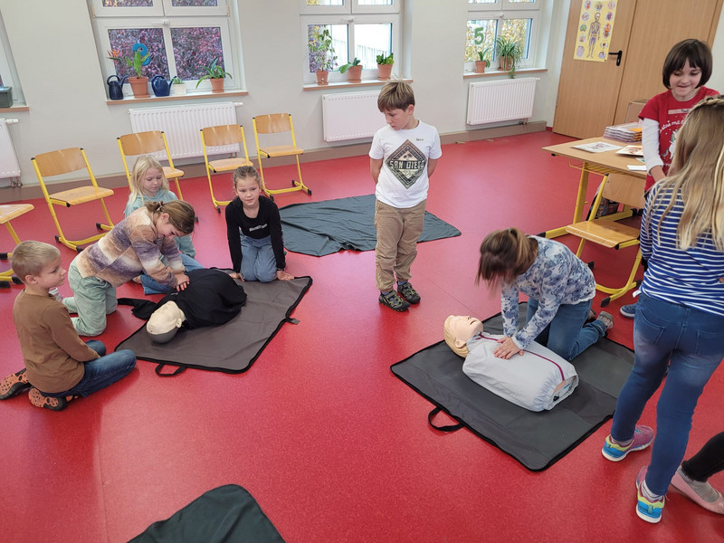 Am 16.11.fand für die Kinder der dritten Klassen ein Herzretter-Training in der Grundschule Kitzscher statt. Der Verein "Ich kann Leben retten! e. V." hat es sich mit den Herzretter-Trainings zur Aufgabe gemacht, allen Generationen zu zeigen, wie sie mit Mut und einfachen Handgriffen das Leben von Menschen retten können. Da die meisten Kinder und Jugendlichen erst bei der Führerscheinprüfung in Kontakt mit der Wiederbelebung eines Menschen kommen, finden wir es sehr wichtig, die Kinder auch im Grundschulalter auf Notfälle vorzubereiten.