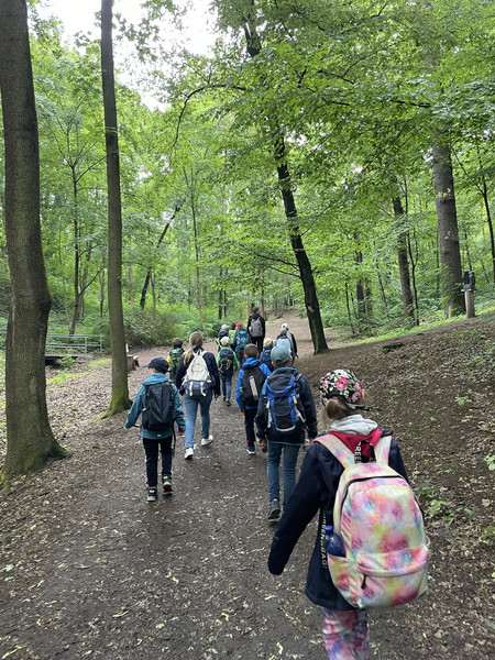 Ob es darum ging, alten Buchen zuzuhören, die von ihrem Leben erzählten, oder ein Gebiet mit Bach und See zu erkunden – jede Exkursion ist eine Entdeckungsreise. Wir lernen Bäume, Sträucher und Kräuter kennen, die alle eine Rolle in der großen Lebensgemeinschaft des Waldes spielen. Herr Blaube führt uns auf Tierpfaden, wo wir Fraßspuren, Losungen und sogar Überreste von Mäusebussarden entdecken.