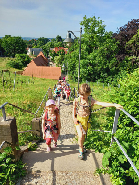 Als „Kunstdetektive“ erforschten die Schülerinnen und Schüler der Klassen 1a und 1b am 01.06.2023 und 07.06.2023 zunächst die Dauerausstellung des Sächsischen Weinbaumuseums. Im Anschluss schlüpften sie mit Kostümen selbst in die Rollen von Kurfürsten und Winzern und haben erfahren, warum die Reblaus der Hoflößnitz und ihren früheren Besitzern tüchtig zu schaffen machte.