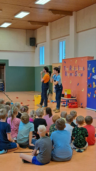 Am 29. August 2025 durften unsere Schülerinnen und Schüler ein ganz besonderes Highlight erleben: Die englische Rhyme Show „The Ridiculous Rhyme Show“ gastierte an unserer Schule – ermöglicht durch die großzügige Unterstützung des Fördervereins.