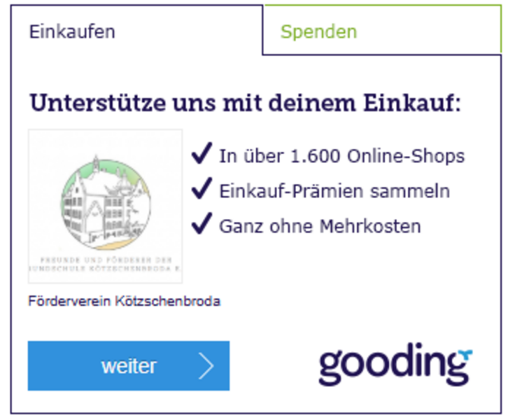 Gutes tun ist so einfach! Wir laden alle Eltern und Unterstützer herzlich ein, bei Ihren Online-Einkäufen den Shopping-Link des Fördervereins Kötzschenbroda zu nutzen. Durch jeden Einkauf über diesen speziellen Link erhält der Förderverein automatisch eine Prämie, die unseren Projekten zugutekommt.