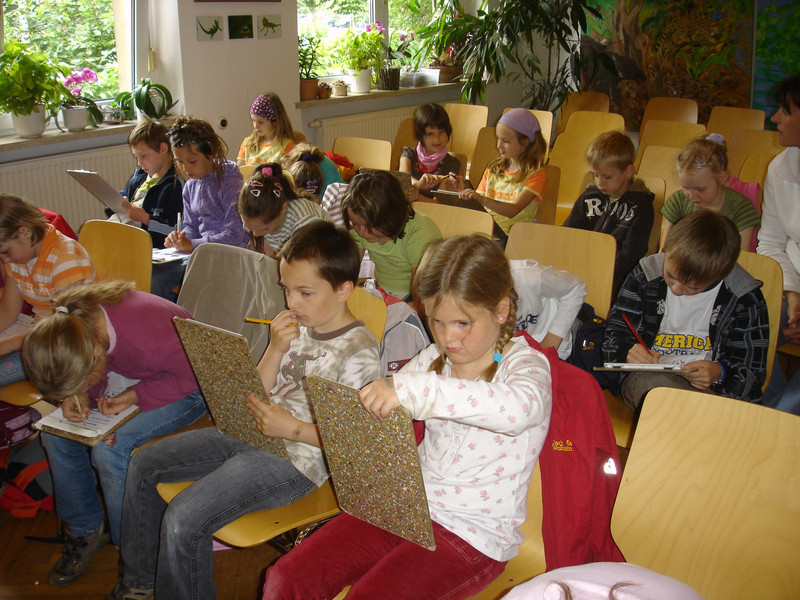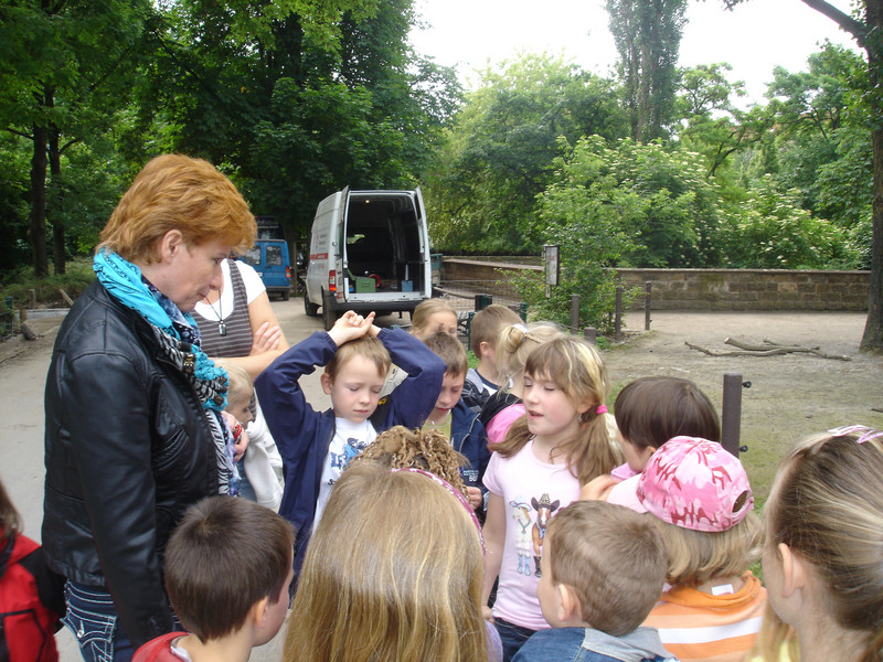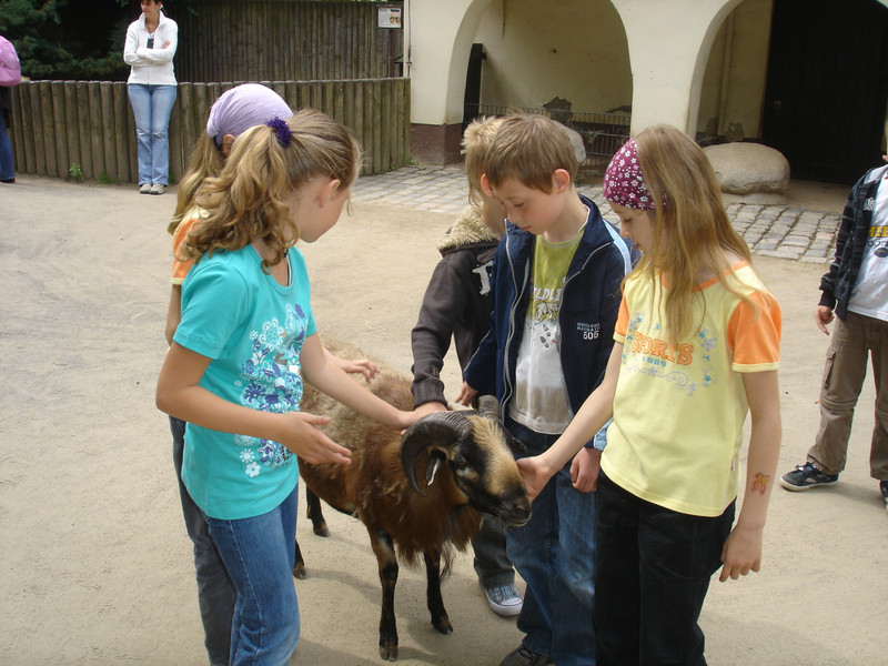 Als Abschluss der Unterrichtseinheit "Haustiere" besuchten wir Mitte Juni den Dresdner Zoo. Nachdem uns eine Lehrerin der Zooschule in einem Unterrichtsraum noch einmal den Unterschied zwischen Haustier und Heimtier erklärt hatte, gingen wir auf Erkundungsgang nach Haustieren aus aller Welt. Was von manchen Tieren alles genutzt wird, erstaunte uns schon. Am schönsten war natürlich der Streichelzoo.