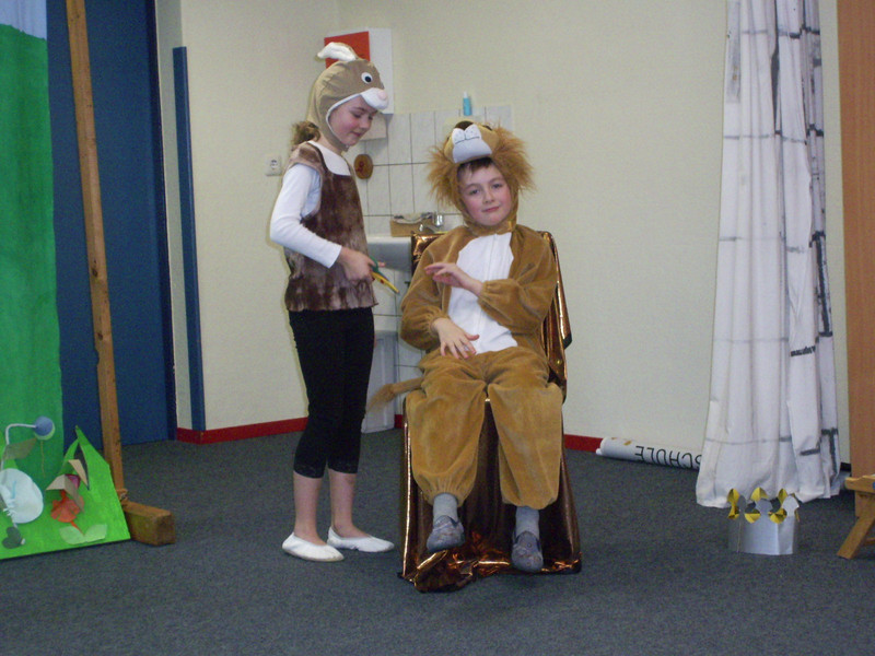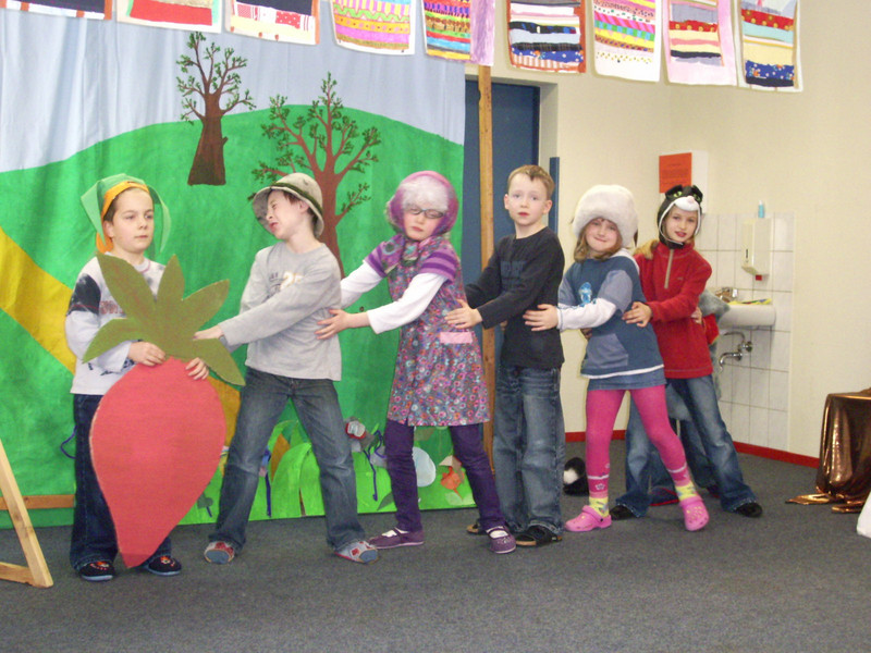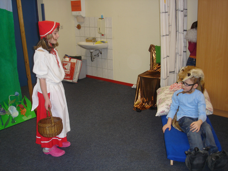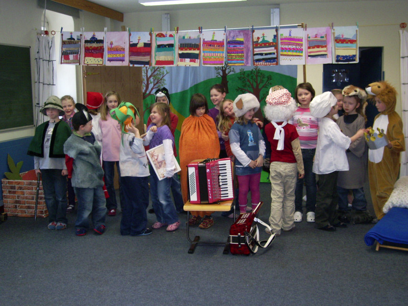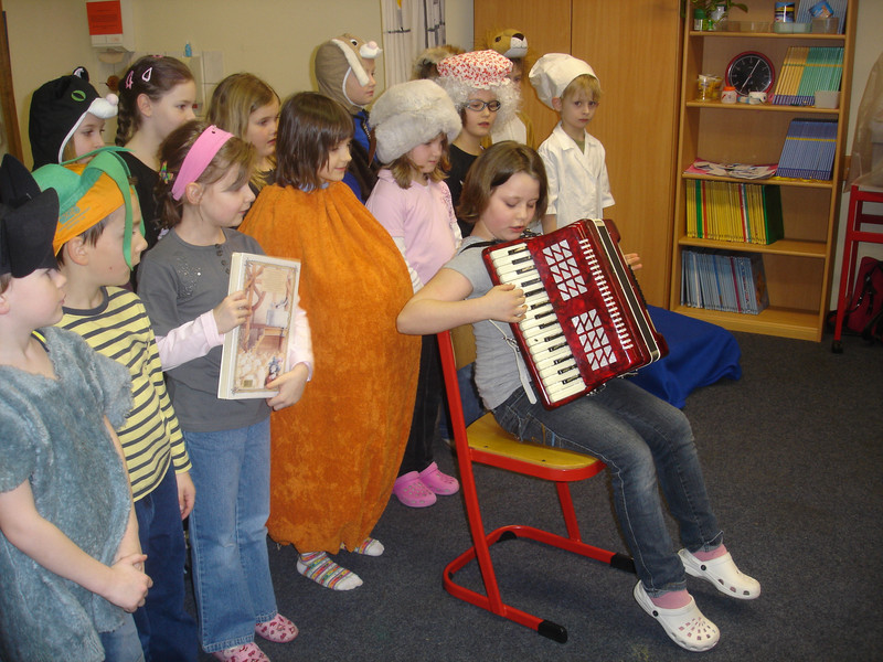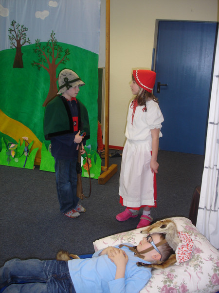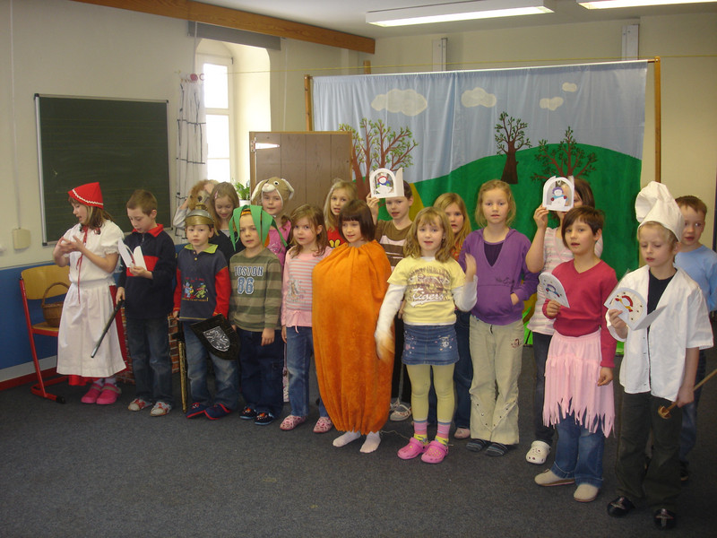 Daraus entstand ein kleines Märchenprogramm, das wir unserer 1. Klasse und unseren Eltern vorspielten.