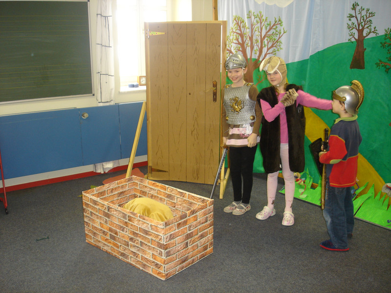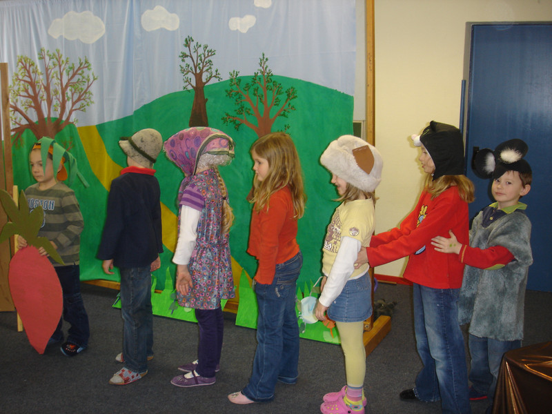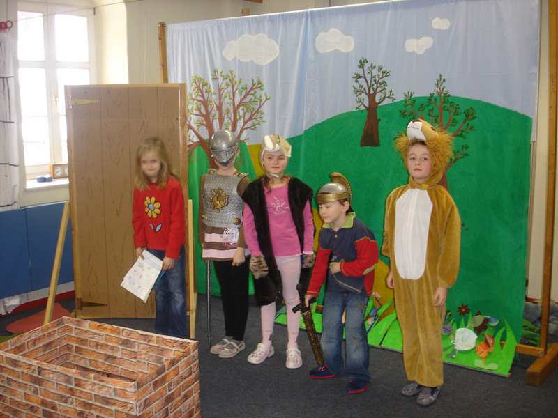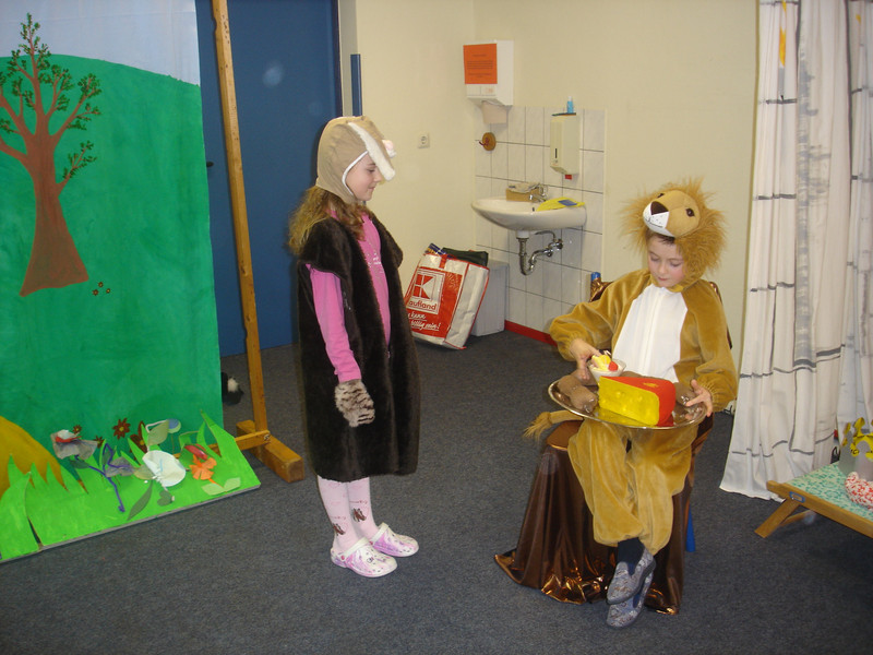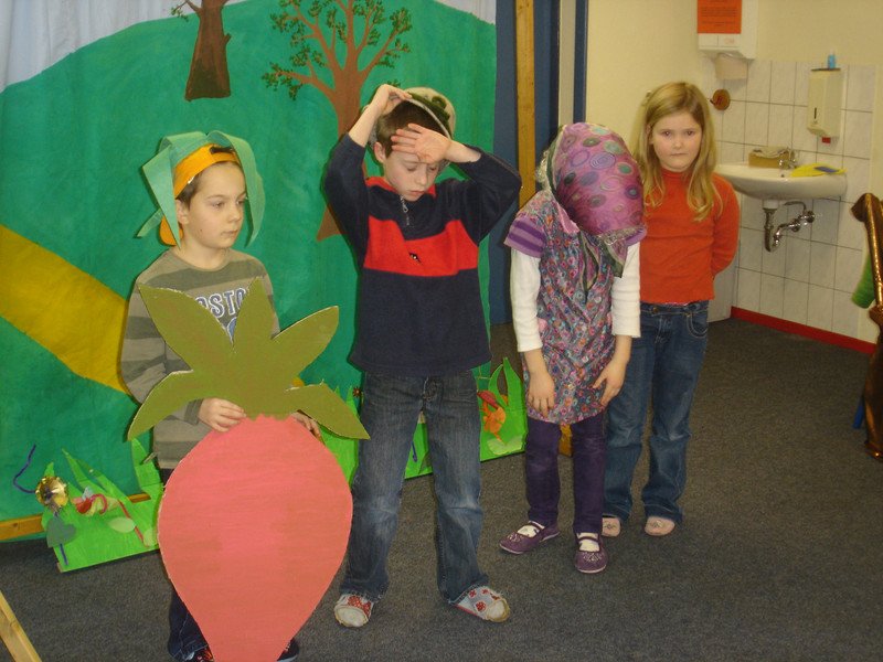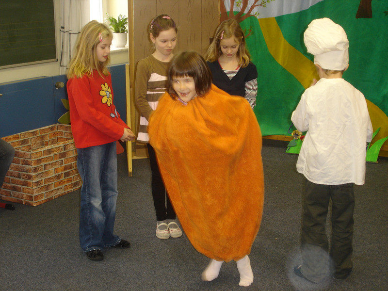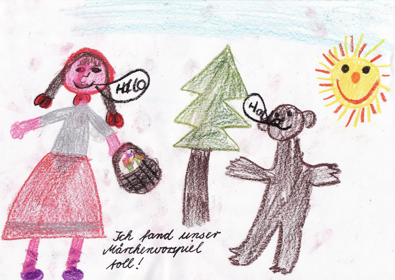 Daraus entstand ein kleines Märchenprogramm, das wir unserer 1. Klasse und unseren Eltern vorspielten.