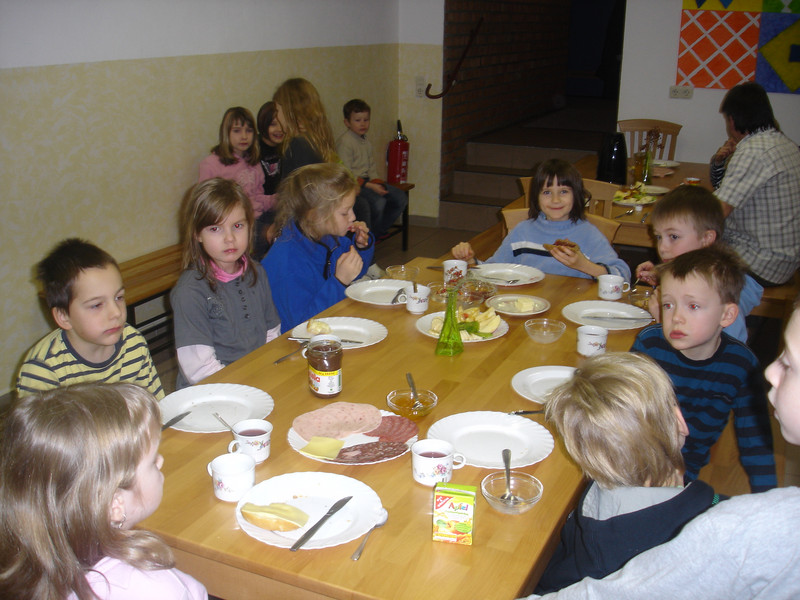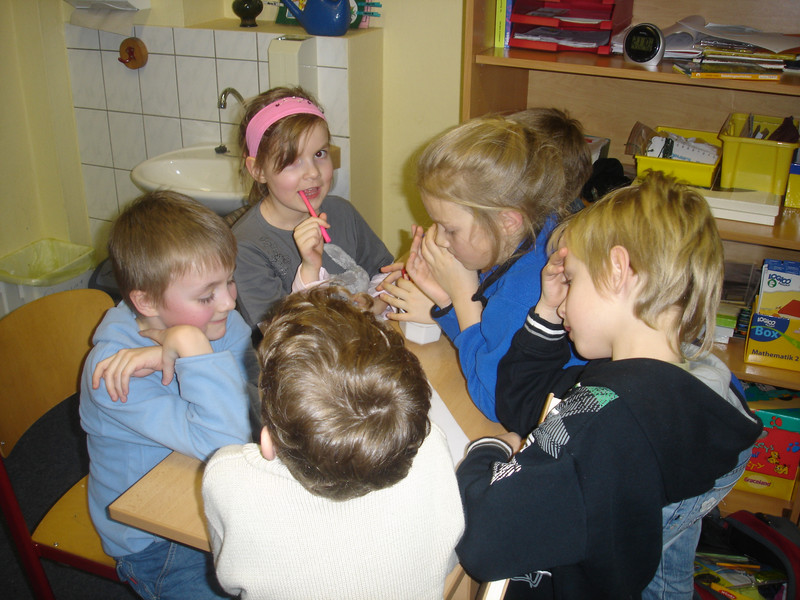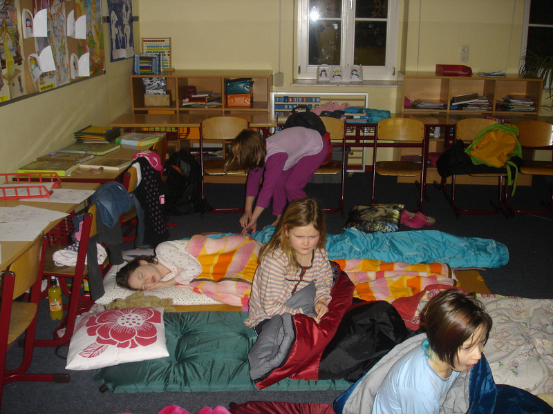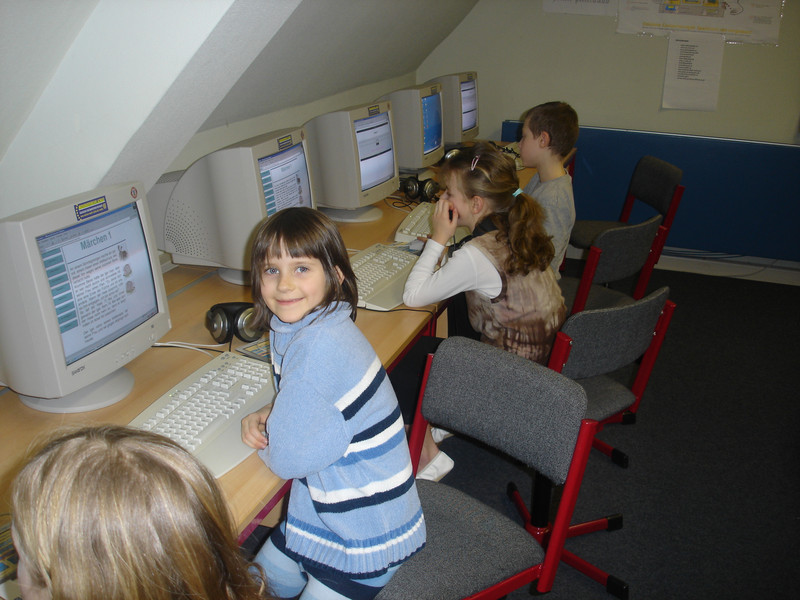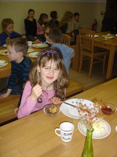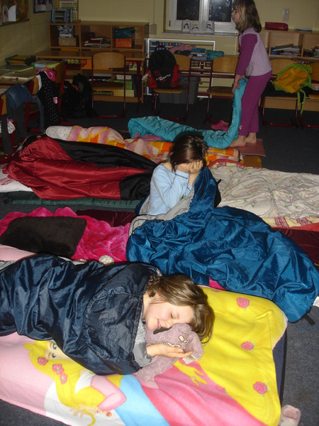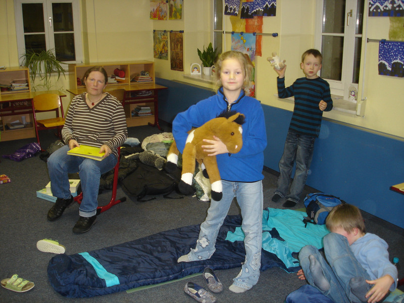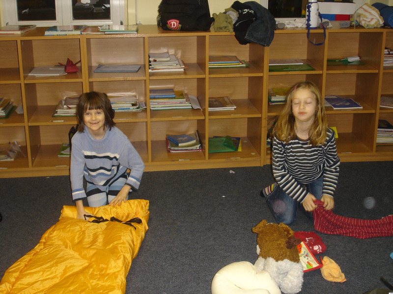 Bei Frau Hübner konnten wir Märchen lauschen, die sie uns aus ihrem großen Märchenbuch vorlas, Frau Meißner half uns ein kleines bisschen bei einem recht schwierigem Märchenquiz und Herr Rechenberger unterstützte uns bei den Aufgaben am Computer. Zum Schluss versuchte uns das "Traumfresserchen" aus Michael Endes Märchen in den Schlaf zu wiegen. Wir riefen mit dem Märchenspruch das Traumfresserchen, damit es auch uns von allen bösen Träumen befreit. Die Albträume konnte diese Märchenfigur sicher fernhalten, aber der eine oder andere kleine freche Kobold störte doch manchmal noch ein klein wenig die Nachtruhe, so dass am nächsten Morgen einige Mühe hatten aus dem Schlafsack zu kriechen. Das von Frau Weichelt und Frau Pönitz liebevoll zubereitete leckere Frühstück lockte dann aber auch den letzten aus den Federn.