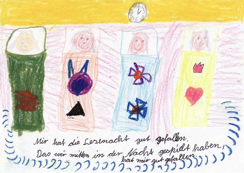 Einen gelungenen Abschluss unseres Märchenprojektes bildete unsere Lesenacht. Nach der Aufführung unseres Märchenprogrammes vor unseren Eltern und Geschwistern, die uns dafür mit viel Beifall belohnten, verabschiedeten wir uns von ihnen, um uns noch einen langen Abend mit verschiedenen Aktivitäten rund um Märchen zu vergnügen.