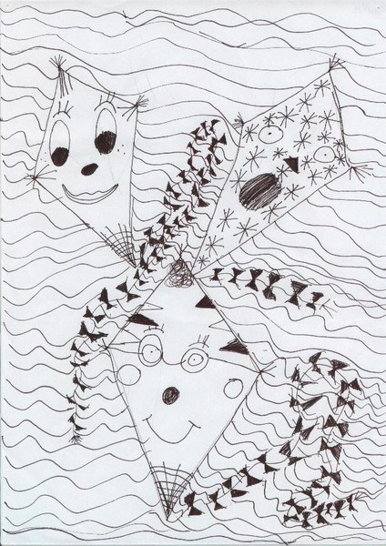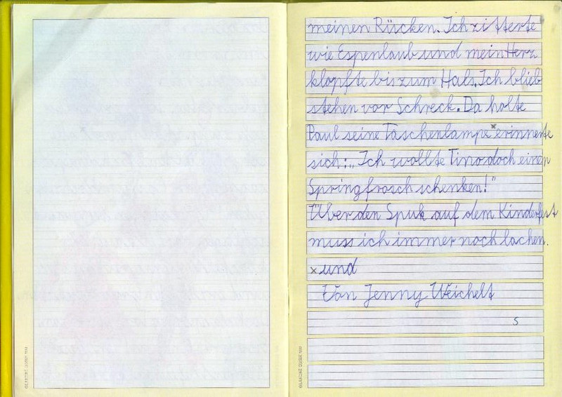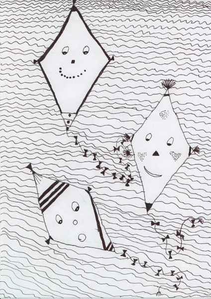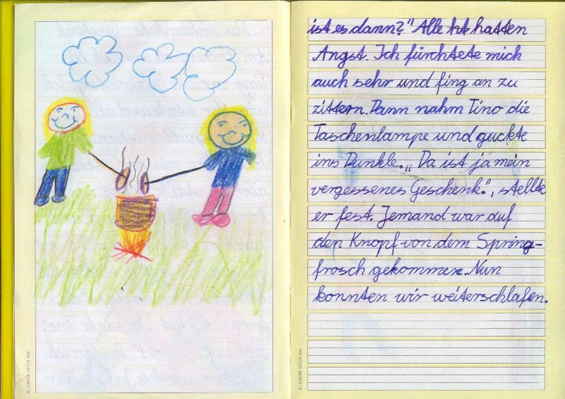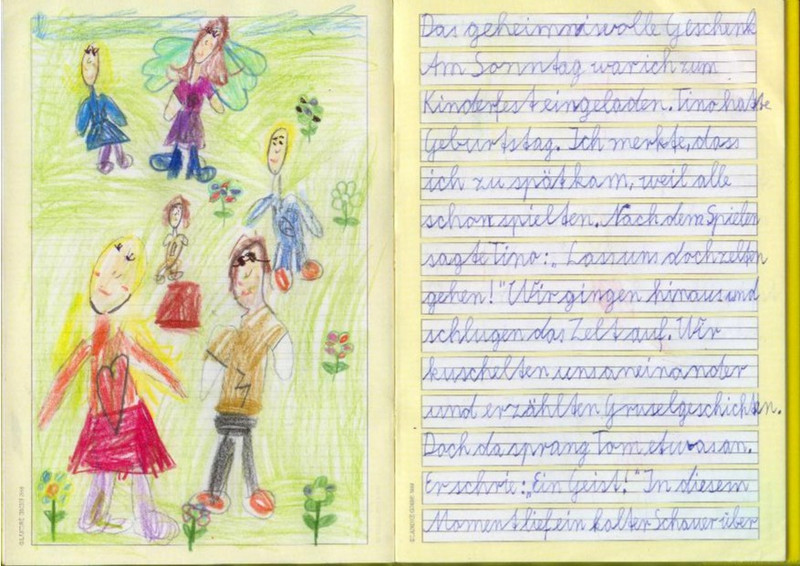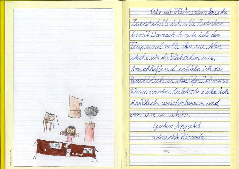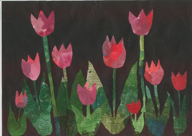 Schülerarbeiten Märchen " Prinzessin auf der Erbse" Farbige Bildgestaltung, teilweise unter Verwendung von Stoff Sonnenblumen nach Vincent van Gogh Farbige Bildgestaltung mit Wasserfarben Unsere Drachen tanzen lustig im Herbstwind Grafische Bildgestaltung mit schwarzem Fineliner Kahle Bäume im November Positiv- Negativ Scherenschnitt Unheimliches und Spannendes Was man unverhofft auf einem Kinderfest erleben und wie man sich dabei fühlen kann, haben wir uns in einer Erlebniserzählung ausgedacht. Hier einige Auszüge aus den Geschichtenheften: Eine Anleitung zum Plätzchen backen Mein Tulpenbeet Schneidarbeit aus vorher eingefärbtem Zeitungspapier