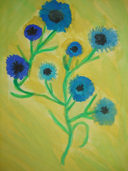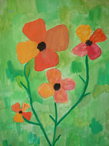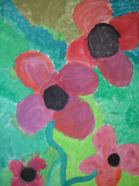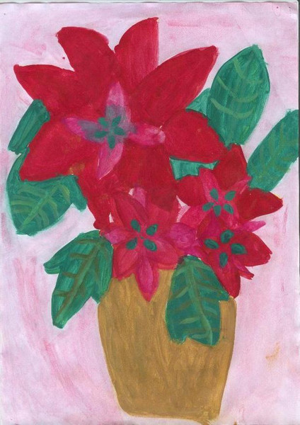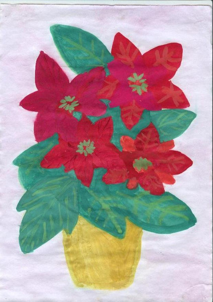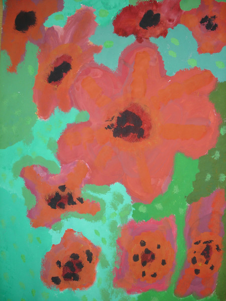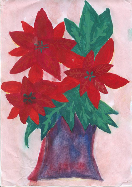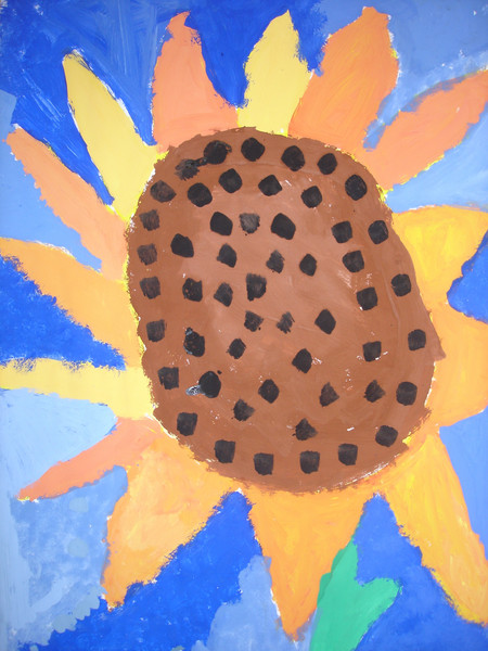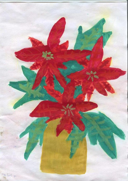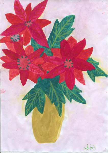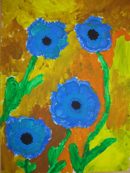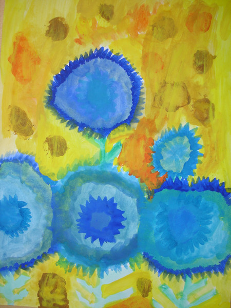 Schülerarbeiten Halloween - Die Hexe fliegt über unsere Stadt Weihnachtssterne MeinTraumhaus nach Friedensreich Hundertwasser Blumen im Kornfeld