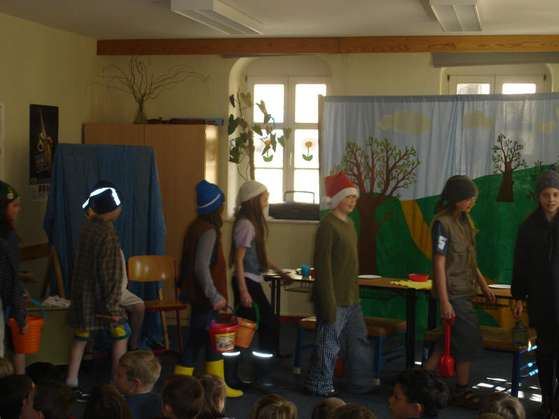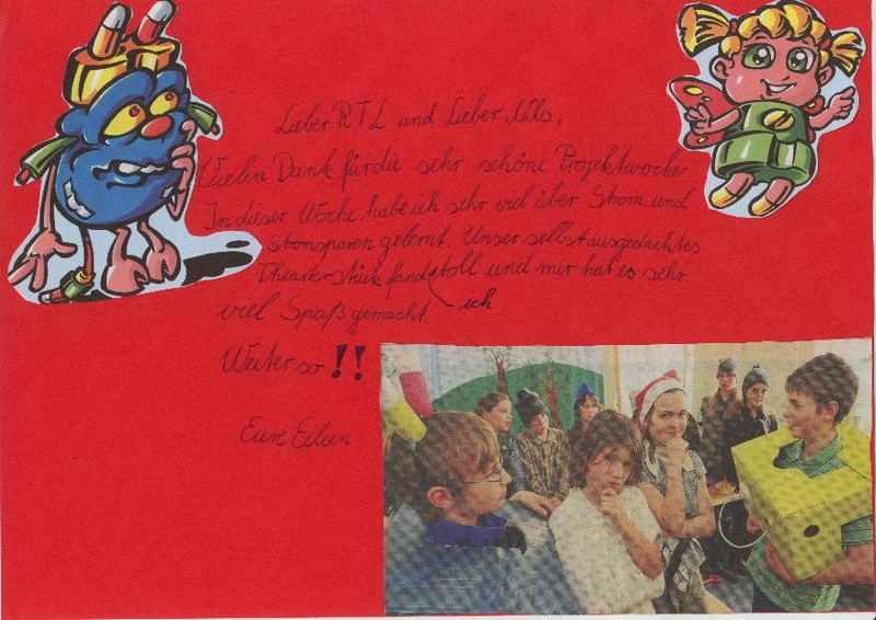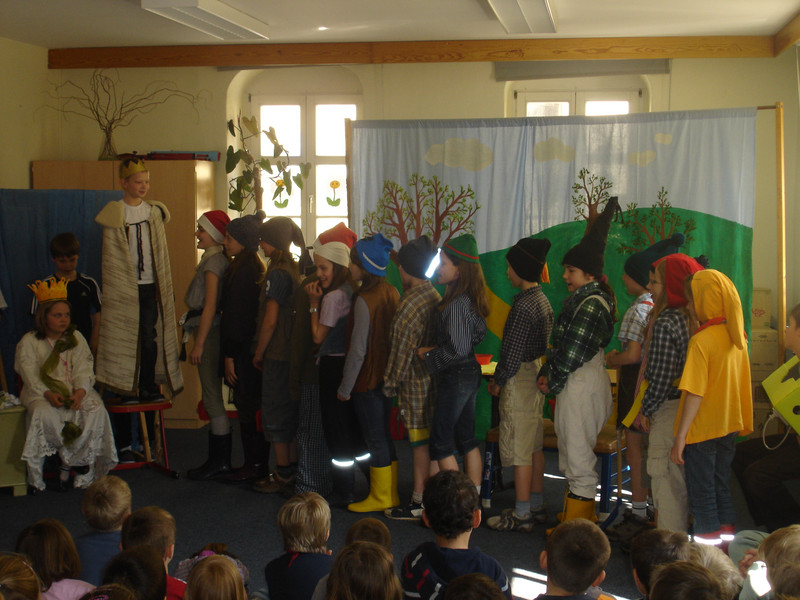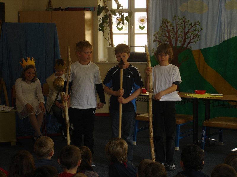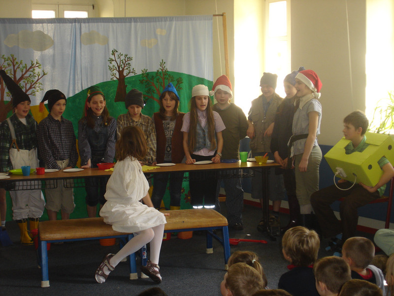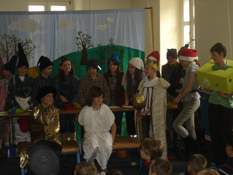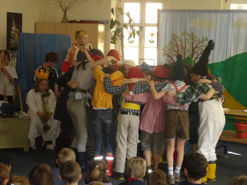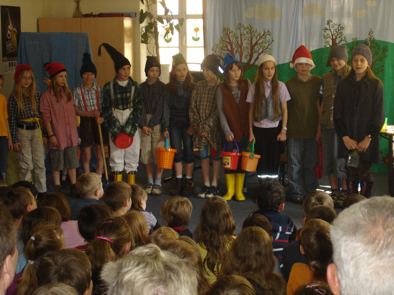 Auf der Grundlage der STROMSPARfibel lernten wir Wissenswertes zur Stromerzeugung, den Konsequenzen eines Lebens ohne Strom und Möglichkeiten Strom zu sparen. Alle diese Inhalte versuchten wir in dem von uns neu inszenierten Märchen"Schneewittchen" szenisch umzusetzen und präsentierten es zum Abschluss unseren Mitschülern der Klassen 1 bis 3 und einigen Gästen. Unsere Freude beim Spielen und Darbieten übertrug sich auf alle Zuschauer. Sie belohnten unseren Auftritt mit viel anerkennendem Beifall.