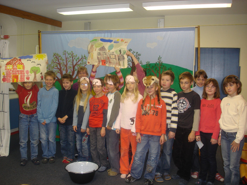 Im Rahmen des Englischunterrichtes studierten die Schüler der 4. Klasse zum Thema "ANIMALS" das Märchenstück "THE THREE LITTLE PIGS" ein.