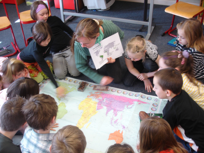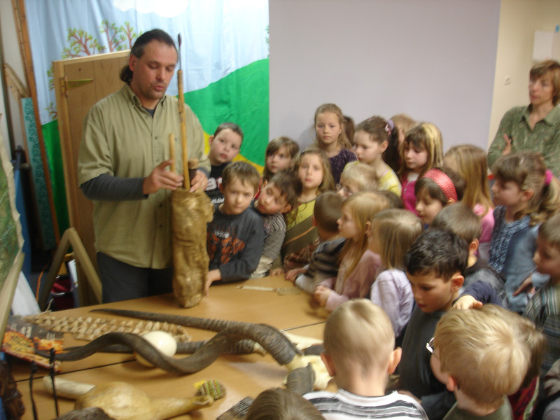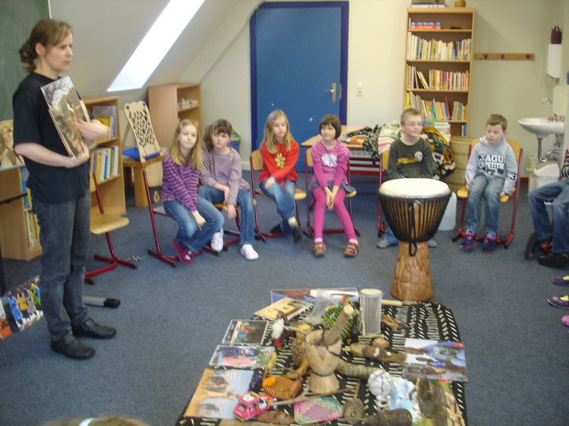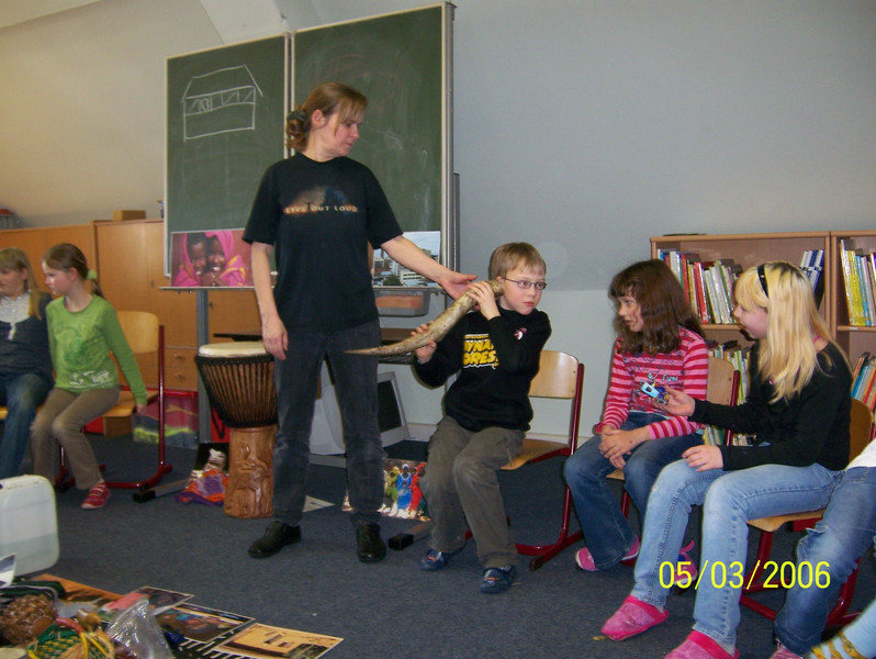 Herr Hensel, Vati unserer Lisa aus der 4. Klasse, konnte uns durch sein Studium und durch private Reisen, ganz persönliche Eindrücke in Wort, Bild und Ding vermitteln. Mit einem interessanten Diavortrag brachte er uns die beeindruckende Landschaft, seine Begegnungen mit den Tieren der Savanne und den einheimischen Menschen näher. Seine mitgebrachten Gegenstände ließen uns viele Fakten besser vorstellen und Zusammenhänge leichter begreifen.