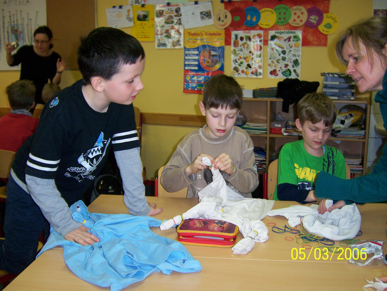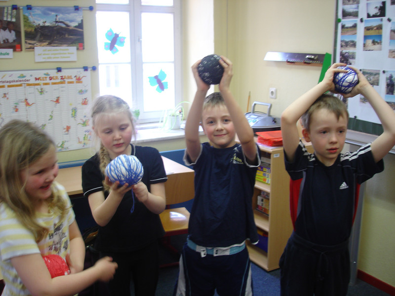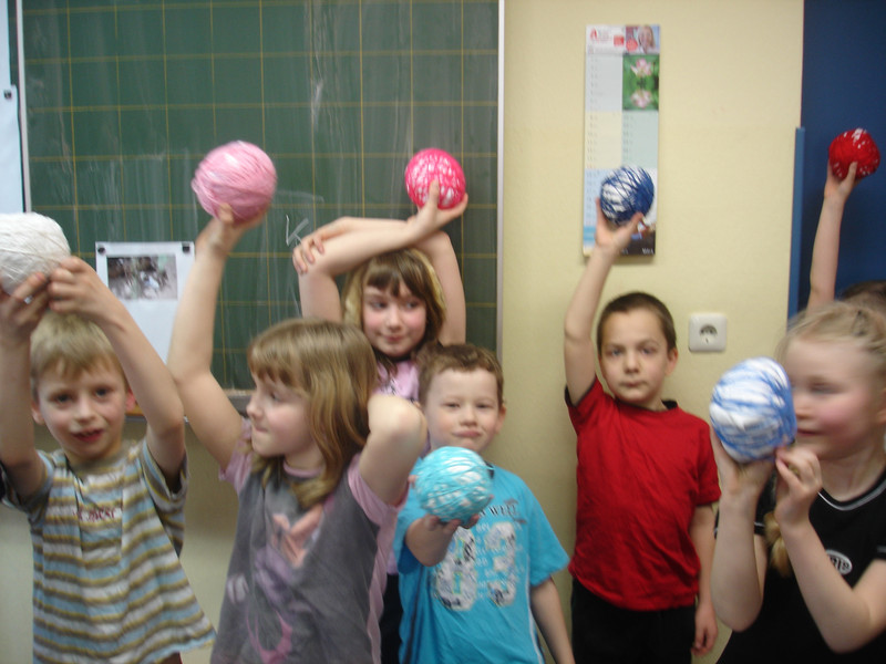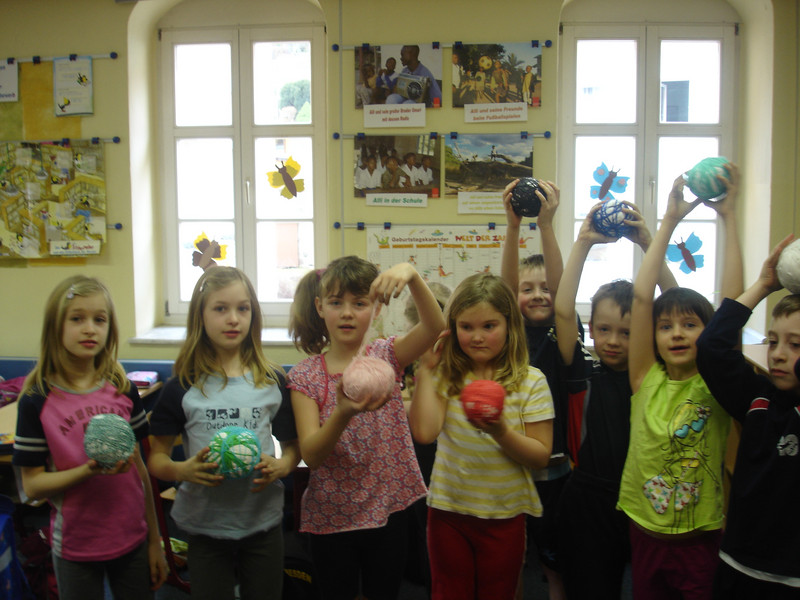 Die 2. Klasse bastelte ganz nach dem Vorbild afrikanischer fußballbegeisterter Kinder aus Abfällen wie Zeitungspapier, Stoffstreifen, Strick oder Wolle einen Ball. Es war gar nicht so einfach ihn so fest zu verknoten, dass er auch unserem Praxistest standhielt. Nun fiebern wir der Fußballweltmeisterschaft in Südafrika entgegen.