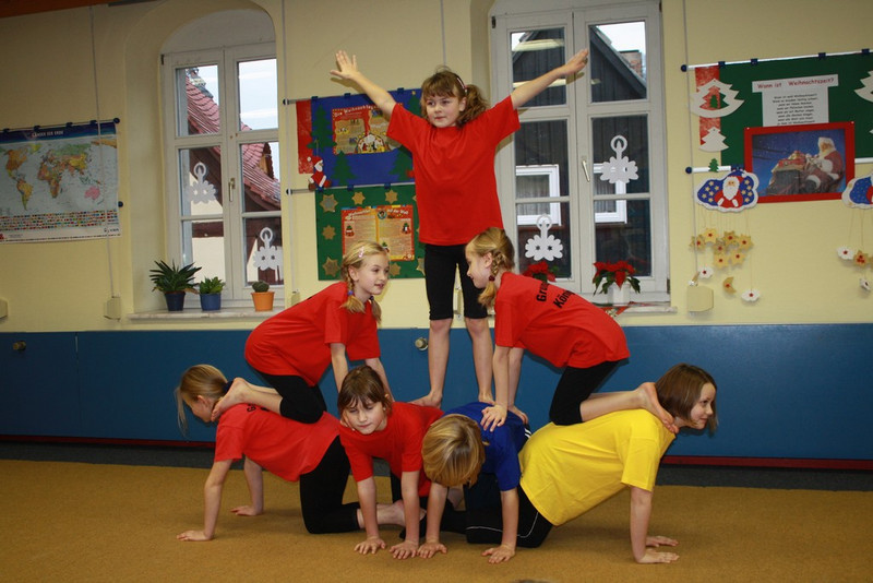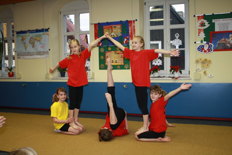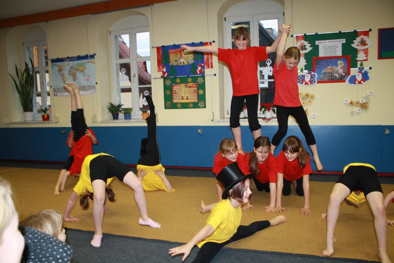 Unsere Akrobaten eröffneten ihre Darbietung mit einer Popgymnastik und zeigten anschließend ihre ersten kleinen Kunststücke.