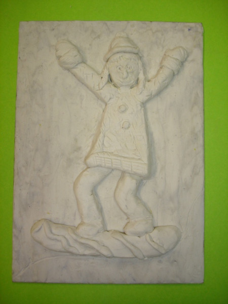 Verschiedene Bewegungshaltungen bei unterschiedlichen Wintersportarten darzustellen und möglichst detailreich im Relief mit Plastelina hervorzuheben war eine echte Herausforderung an die körperhaft räumliche Vorstellungskraft, an Geschick und Fingerfertigkeit