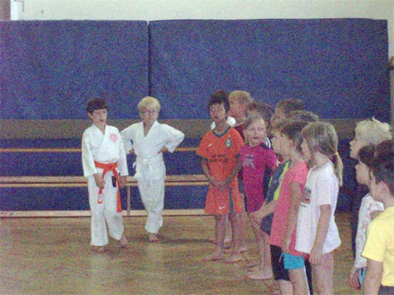 Karate- Schnupperstunde Fächerverbindende Woche "Fit und gesund durch das Jahr" Herr Mario Wolf führte mit den Kindern eine Karate- Schnupperstunde durch, bei welchem alle Schüler einmal Einblick in diesem Sport erhielten.