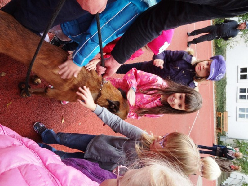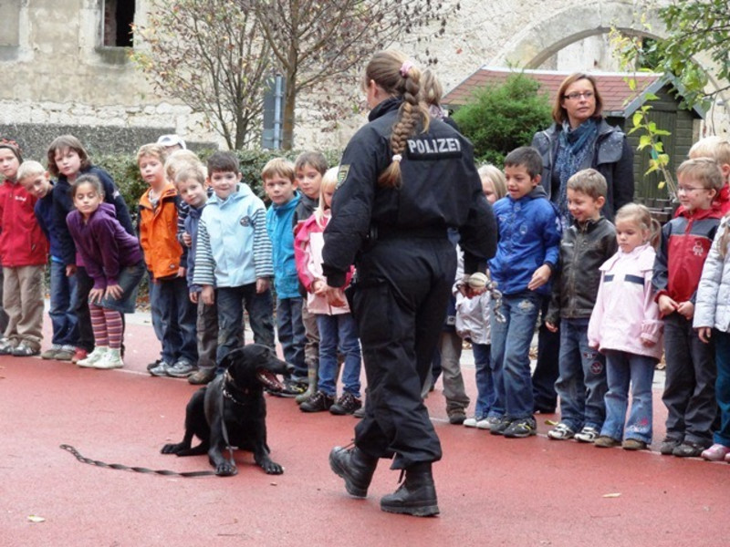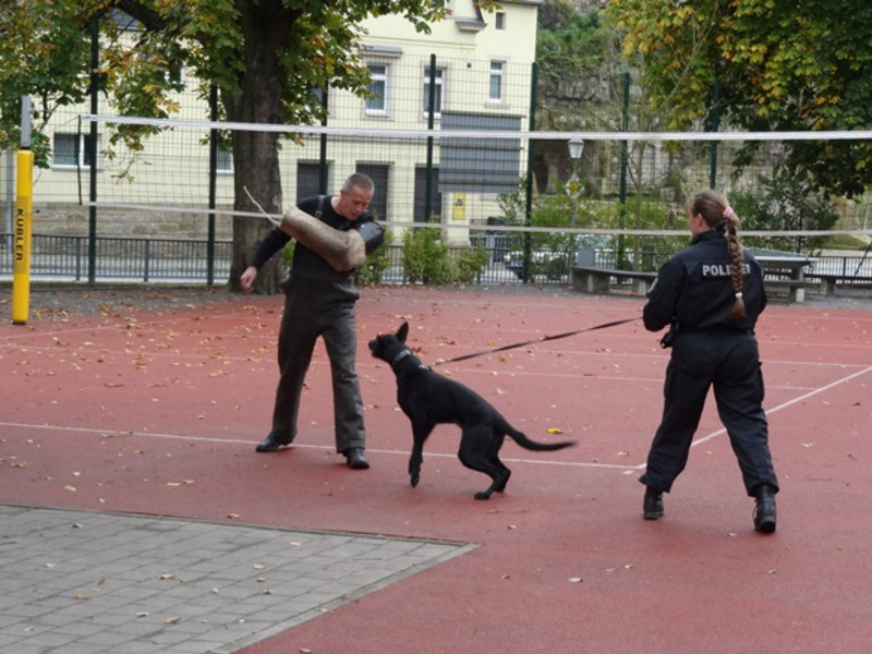 Es war sehr interessant und kurzweilig. Den Höhepunkt bildete aber dennoch die abschließende Überraschung- die Hundestaffel. Wir wurden theoretisch in die Aufgaben der ausgebildeten Polizeihunde eingeführt und konnten uns durch praktische Vorführungen von den speziellen Fähigkeiten dreier Hunde überzeugen. Einfach erstaunlich und toll!