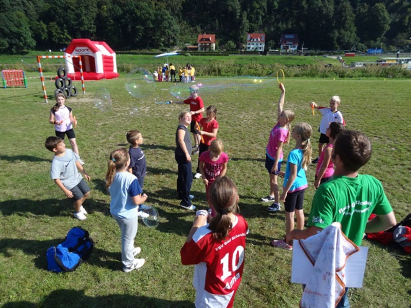 Im Rahmen der 750 Jahrfeier des Kurortes Rathen nahm unsere Schule am von der Lebenshilfe organisiertem integrativen Sportfest teil. Gemeinsam mit anderen Sportlern aus Kindergärten, Grundschulen und Fördereinrichtungen kämpften unsere Schüler der Klassen 3 und 4 an verschiedenen Stationen um einen guten Platz. Bei den lustigen Mannschaftswettkämpfen war vor allem Teamgeist und Fairness wichtig. Bei der Siegerehrung konnten sich alle Mannschaften über eine erfolgreiche Teilnahme und Würdigung ihrer Leistung mit schönen Preisen freuen.