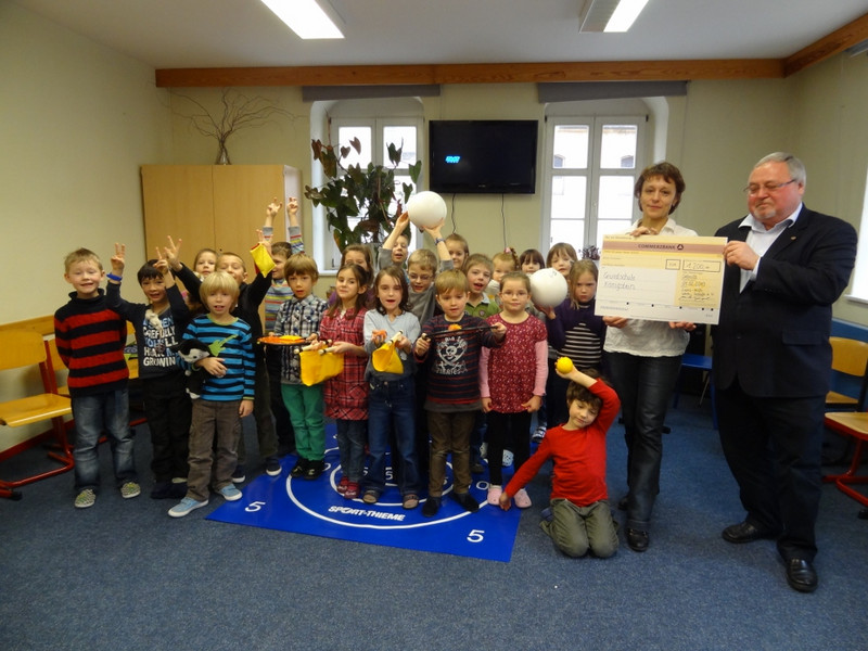 Der letzte Schultag vor den Winterferien gab uns nicht nur durch die bevorstehenden freien Tage Anlass zur Freude. Wir bekamen Besuch vom Lionsclub Sebnitz, vertreten durch Herrn Spiegel von der Papierfabrik Königstein. Im Gepäck hatte er eine großzügige Spende in Höhe von 1200 €. Mit einem Teil des Geldes finanzierten wir bereits im Dezember unseren traditionellen Theaterbesuch in Dresden. Alle Kinder unserer Schule erlebten dabei das Weihnachtsstück "Wunder einer Winternacht" im Theater der Jungen Generation. Der Hauptanteil des Geldes fließt jedoch in geeignete Spielgeräte für eine bewegte Pausengestaltung. Unsere Kinder der Klasse 1 freuten sich bereits am Freitag über die vielen neuen Beschäftigungsmöglichkeiten und probierten einiges schon begeistert aus.
