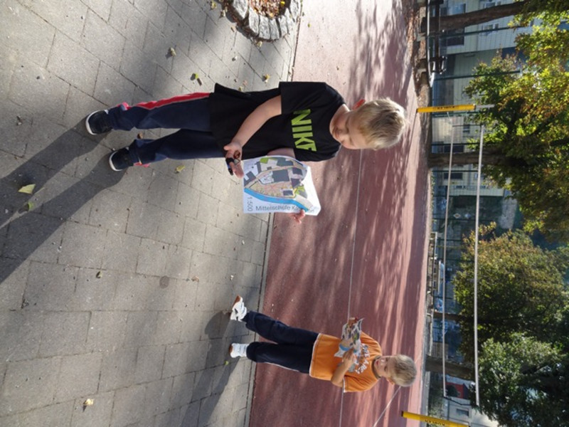 Für fast alle Schüler ganz neu war die Erfahrung eines Orientierungslaufes. Begeistert von Karte und Technik, aber auch noch recht unsicher im Umgang mit ihnen absolvierten die 1. und die 2. Klassen einen Lauf auf dem Schulgelände. Unsere Großen durften sich schon im Waldgebiet rund um die "Schöne Aussicht" im schnellen Orientieren beweisen.