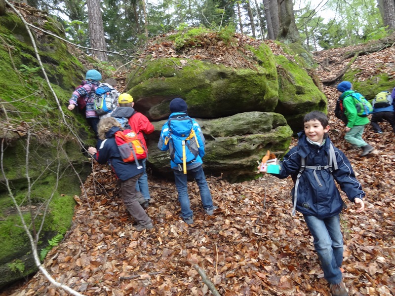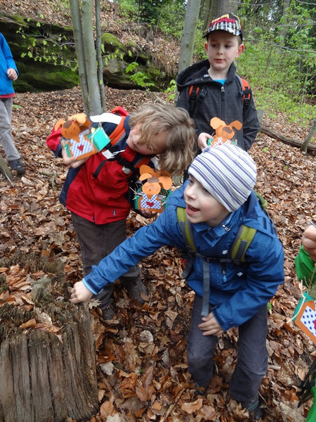 Der Osterhase hatte uns den Tipp gegeben, dass er dieses Jahr besonders fleißig in Leupoldishain unterwegs ist. Darum machten wir uns am Mittwoch vor Ostern auf den Weg Richtung Walderlebniszentrum Leupo. Und richtig - die Kindergartenkinder hatten schon eine Menge Ostereier gefunden. Da musste es doch für uns auch noch eine Überraschung geben! Doch unsere Nester waren so knifflig zwischen den Felsen und unter dem Laub versteckt, dass einige Kinder sogar Hilfe beim Suchen brauchten.