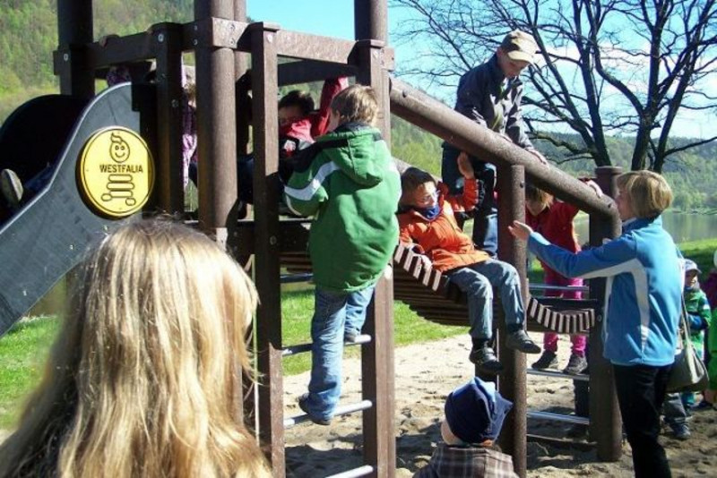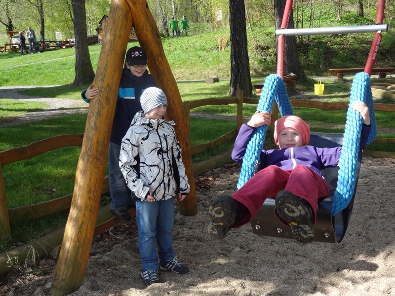 Durch das Hochwasser im Juni 2013 wurde in Königstein auch der Spielplatz an der Elbe zerstört. Dank der Initiative der gebürtigen Rosenthalerin Julia Altenburg, der Stadträtin Katrin Klewe und vieler Sponsoren konnte im April ein neuer Platz gebaut werden. Am Gründonnerstag wurde dieser bei strahlendem Sonnenschein eingeweiht. Gemeinsam mit der ältesten Kindergartengruppe durften wir – die Klasse 1 - dabei sein und hatten viel Spaß beim Ausprobieren der neuen Spielgeräte. Danach gab es für uns noch eine große Überraschung. Der Osterhase hatte im Bibelgarten tolle Osternester versteckt und so manch einer musste lange suchen.