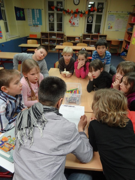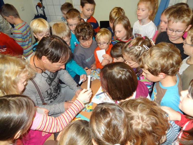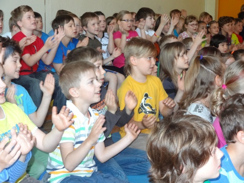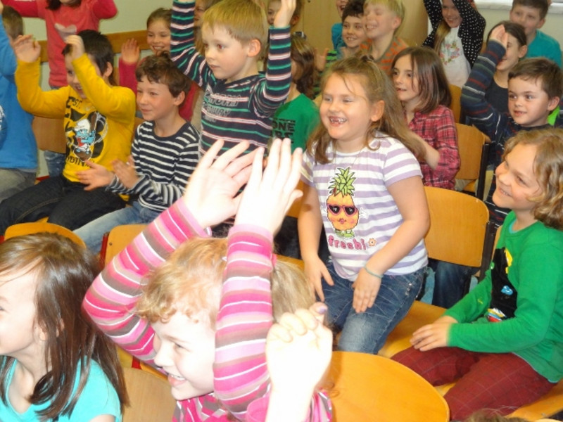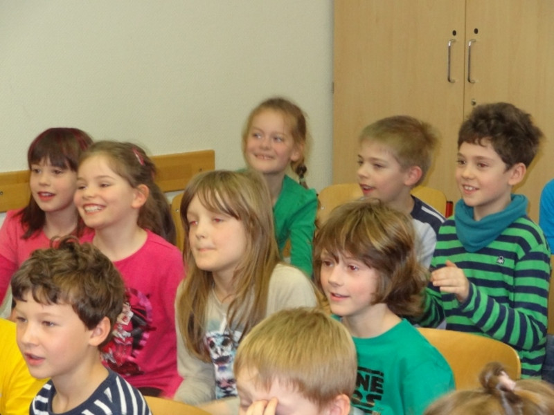 Am 19. November erlebten wir einen besonderen Deutschunterricht. Der Kinderbuchautor Jens Reinländer war an unserer Schule zu Gast und stellte uns zwei seiner beliebten Bücher vor. In einer spritzigen, sehr anschaulichen und bewegten Lesung erfuhren die Schüler der 1. und 2. Klasse aus seinem Buch"Warum das A nicht krumm und das O nicht so..." wann, warum und wie die Buchstaben und das Schreiben erfunden wurde.
