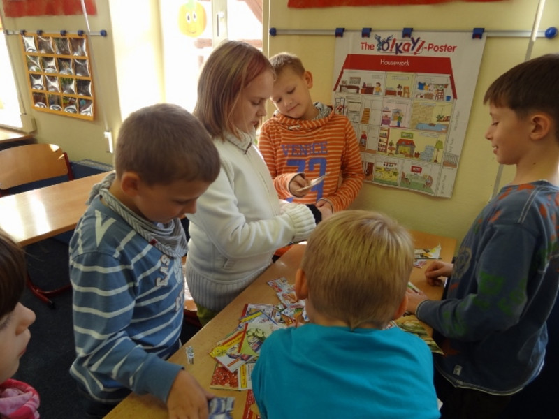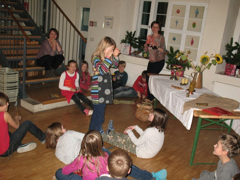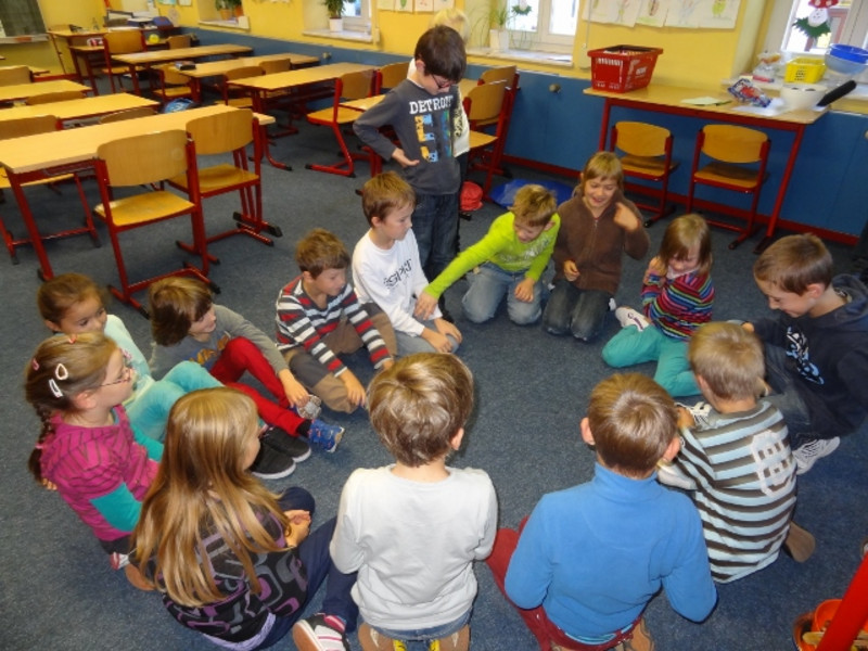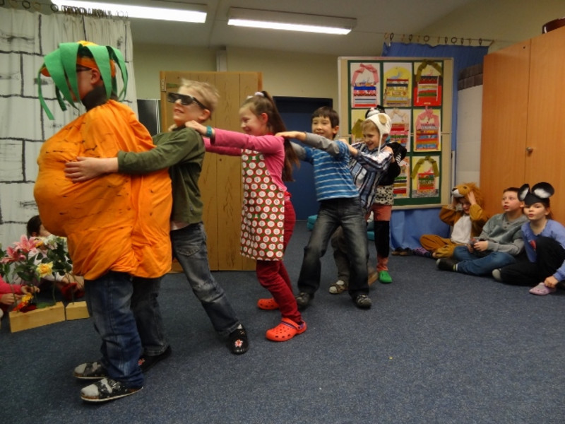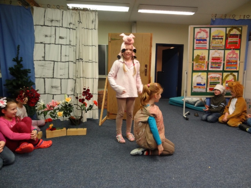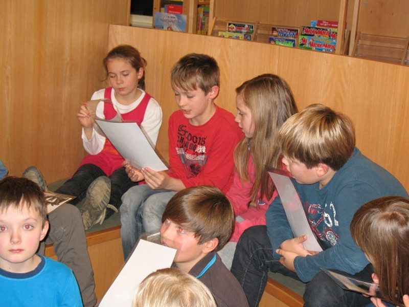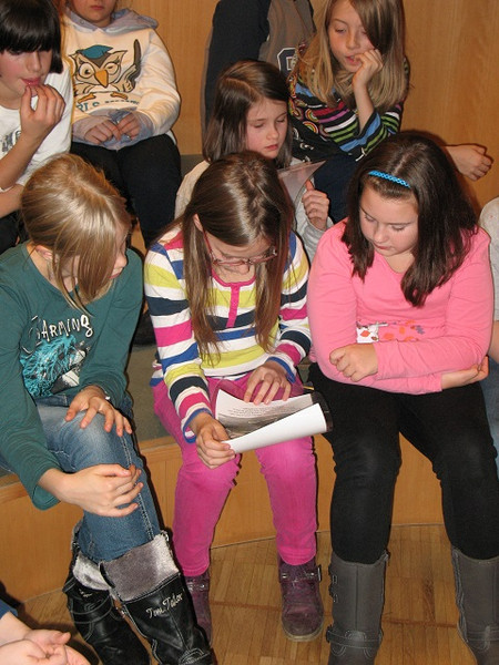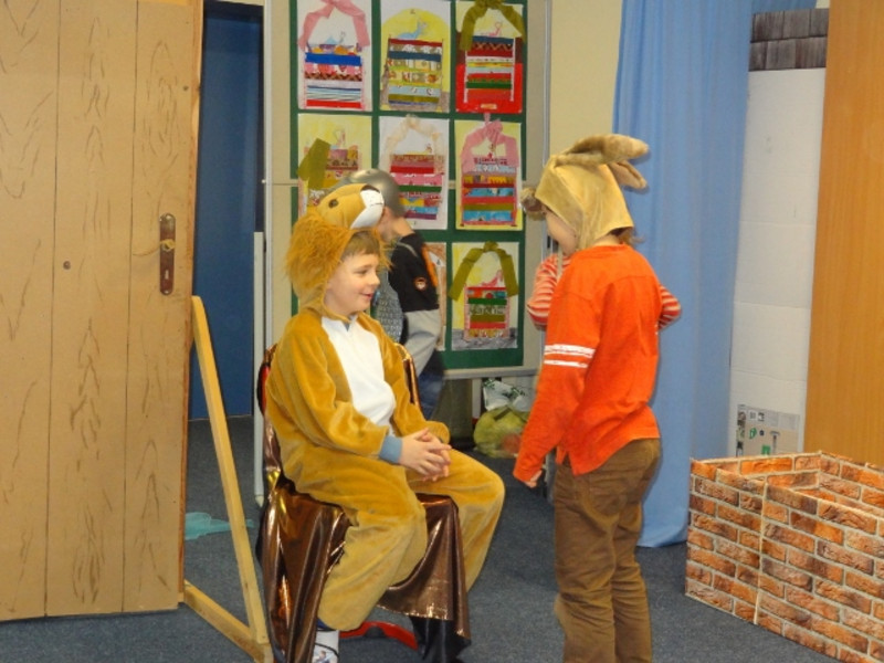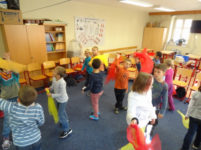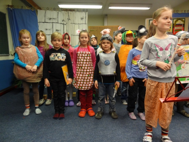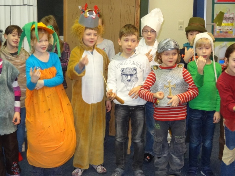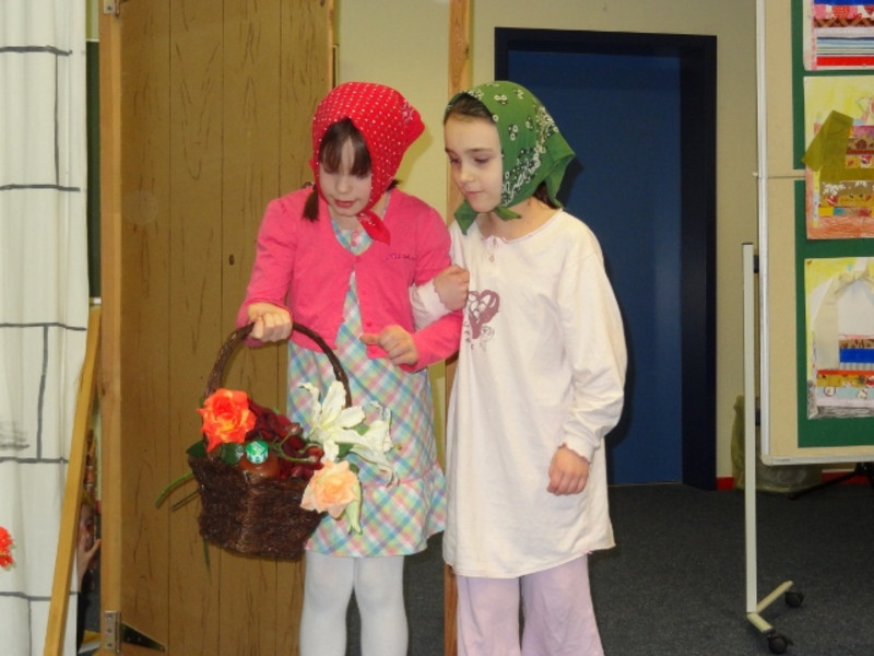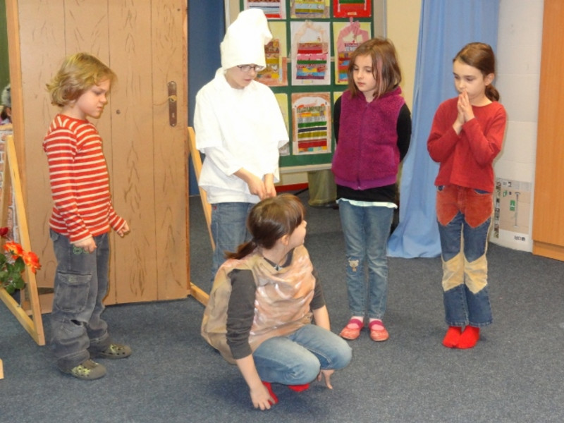 Wir schrieben, lasen und erzählten Märchen, sangen Märchenlieder und malten Märchenbilder und setzten sie schließlich im szenischen Spiel um. Aus allem entstand ein tolles Märchenprogramm, das wir einmal der 1. Klasse und einmal unseren Eltern, Geschwistern oder Großeltern vorführten.