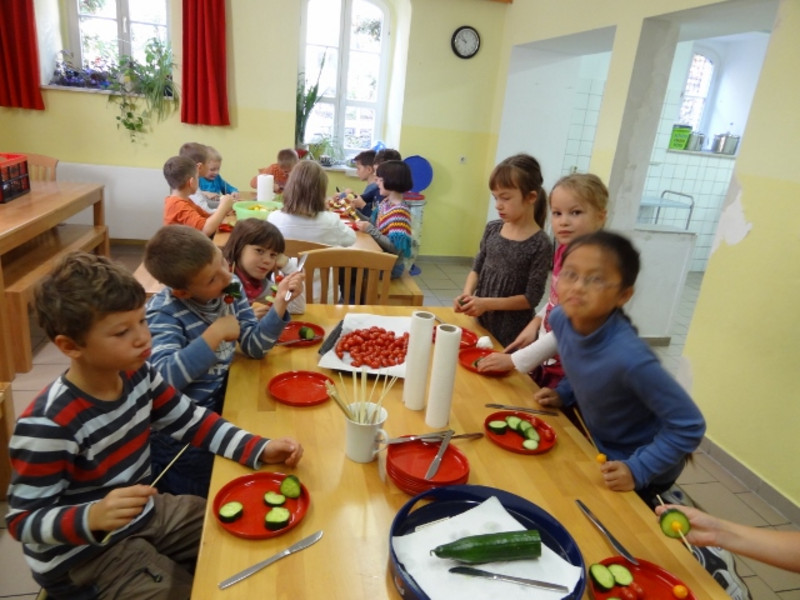 - Wir naschten unseren selbst kreierten Obst- oder Gemüsespieß