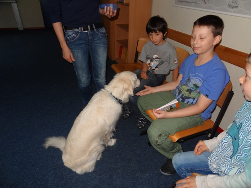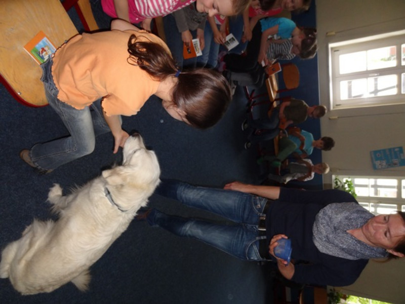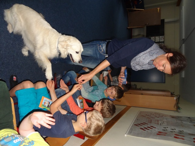 Nachdem wir im Sachkundeunterricht schon viel über die Lebensweise, die Haltung und Pflege von Hund und Katze gelernt hatten, konnten wir nun mit der Hundetrainerin Frau Kerstin Rattmann und Ihrer Hündin Paula trainieren, wie man sich fremden Hunden gegenüber richtig verhält. Wir lernten mit dem Golden Retriever Paula die Hundesprache verstehen und konnten den richtigen Umgang in verschiedenen Situationen praktisch üben. Es war eine sehr interessante und lehrreiche Unterrichtsstunde.
