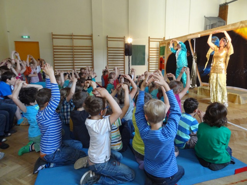 Getreu dem Motto "ALLES DREHT SICH UND BEWEGT SICH" gingen wir mit dem Musiktheater Ellen Heimrath auf musikalische Weltraumreise