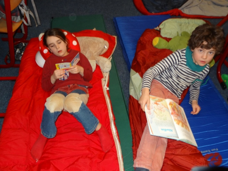 Den krönenden Abschluss unseres Märchenprojektes bildete eine Lesenacht. Wir entschlüsselten Märchenrätsel, schmöckerten in unseren mitgebrachten Märchenbüchern und ließen uns vom Märchenerzähler Herr Hensel in die Märchenwelt anderer Länder entführen.