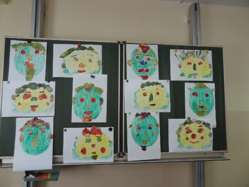 - Wir gestalteten einen Obst- oder Gemüsekopf frei nach Arcimboldo