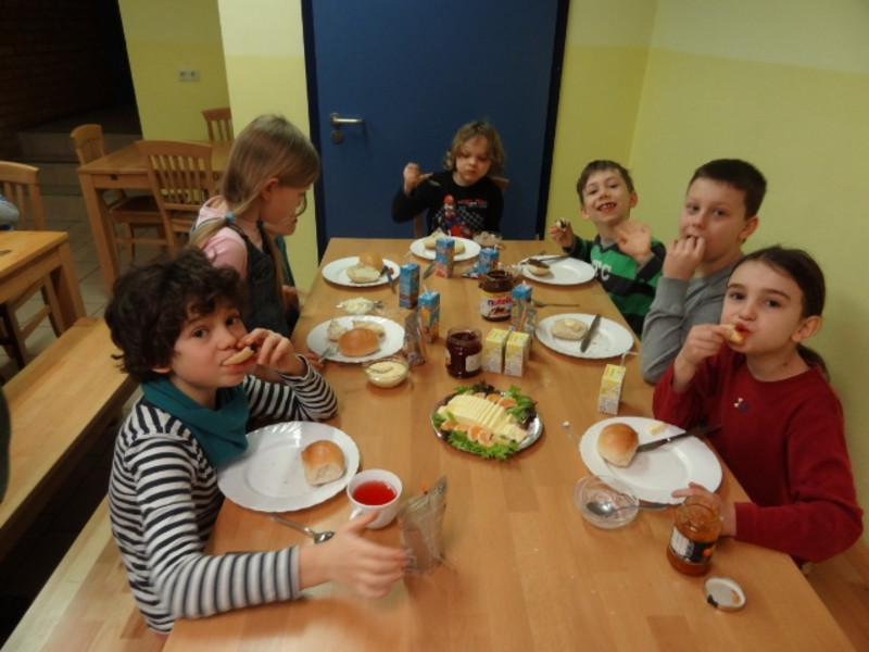 Zwar etwas übermüdet, aber deswegen nicht weniger hungrig, ließen wir uns am nächsten Morgen das von Eltern vorbereitete Frühstück schmecken.