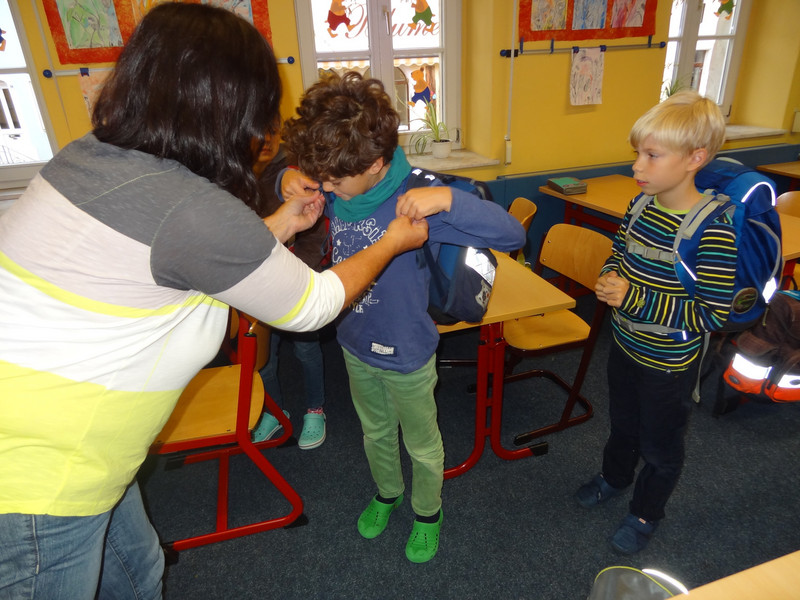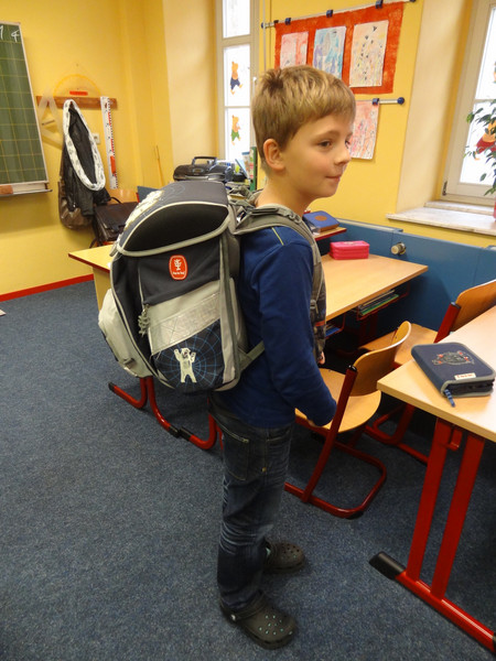 Mitarbeiter der Kaufmännischen Krankenkasse führten mit den Kindern unserer Schule einen Ranzencheck durch. Dabei wurde die Schultasche mit und ohne Materialien gewogen, in Beziehung zum Körpergewicht gebracht sowie Tipps zum richtigen Ranzenpacken und Einstellen der Tragegurte gegeben.
